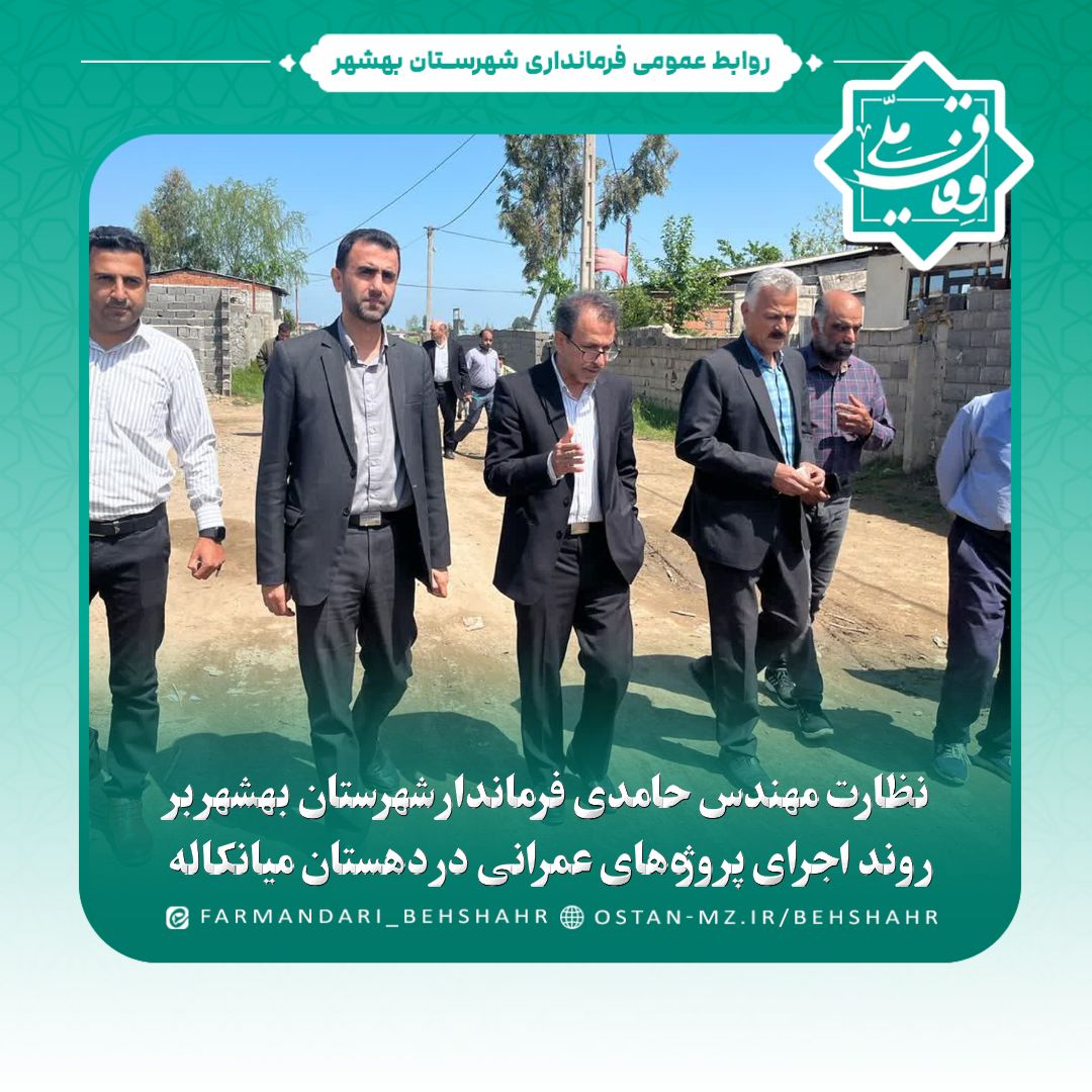 بازدید میدانی مهندس حامدی فرماندار شهرستان بهشهر به همراه مهندس یلا معاون عمرانی فرمانداری، مهندس میرزایی و رؤسای ادارات برق، آب و آب منطقهای از شهرک صنعتی شهید سلیمانی با هدف بررسی مشکلات زیرساختی و تسریع در راهاندازی واحدهای صنعتی انجام شد.