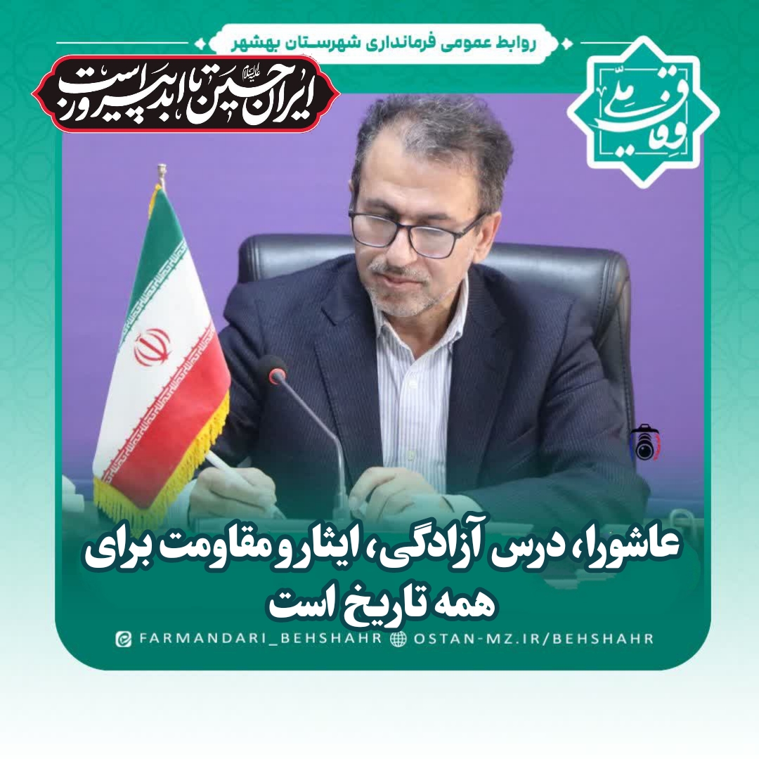 فرماندار شهرستان بهشهر با صدور پیامی، فرا رسیدن تاسوعا و عاشورای حسینی را به عموم مردم شریف، عزاداران حسینی و دوستداران اهلبیت (ع) تسلیت گفت و بر لزوم بهرهگیری از آموزههای نهضت عاشورا در زندگی فردی و اجتماعی تأکید کرد.