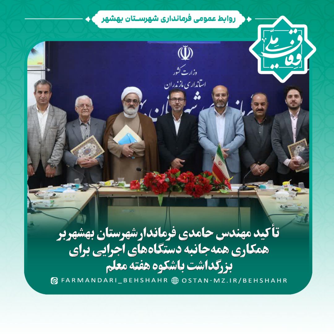 در آستانه هفته قوه قضاییه و سالروز فاجعه هفتم تیر، مهندس حامدی، فرماندار شهرستان بهشهر، با صدور پیامی ضمن بزرگداشت یاد و خاطره شهید آیتالله دکتر بهشتی و یاران شهیدش، این مناسبت را به قضات، کارکنان و مجموعه خدوم دستگاه قضایی شهرستان تبریک گفت و بر نقش مؤثر قوه قضاییه در تحقق عدالت و صیانت از حقوق عمومی تأکید کرد.