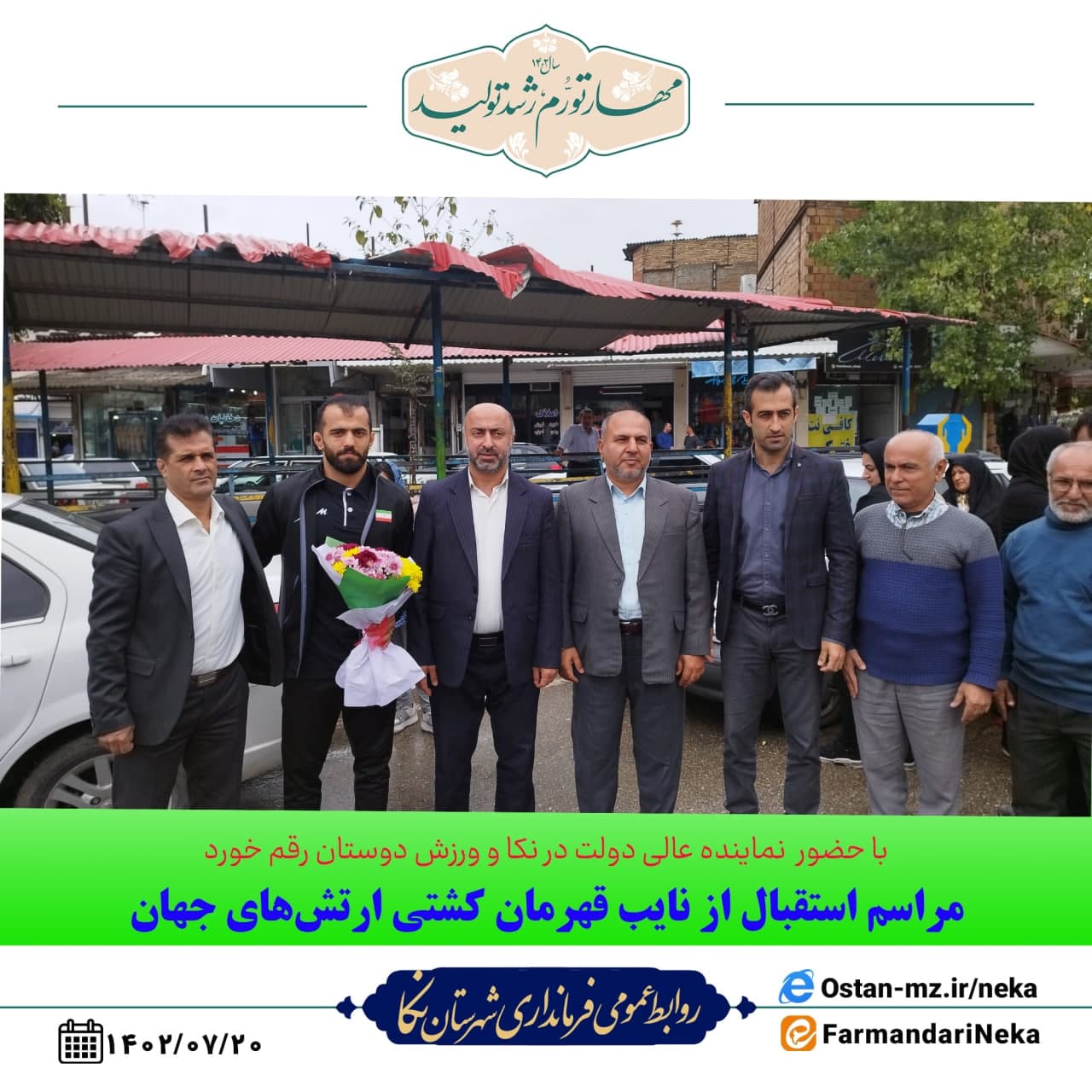 به گزارش روابط عمومی فرمانداری شهرستان نکا؛ مرتضی رمضانی نماینده عالی دولت در نکا با همراهی جمعی از ورزشکاران و ورزشدوستان به استقبال حسن مطلبی نایب قهرمان کشتی ارتشهای جهان رفت.