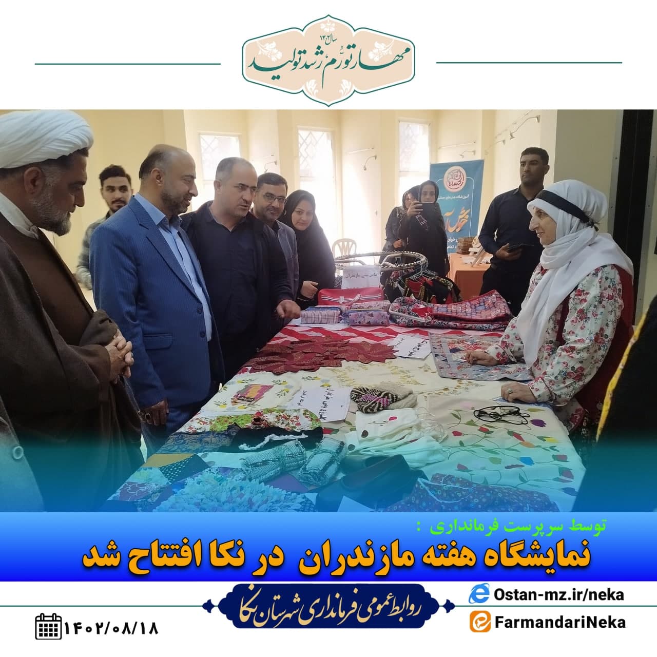 به گزارش روابطعمومی فرمانداری شهرستان نکا، همزمان با برگزاری برنامههای هفته مازندران در نکا مرتضی رمضانی سرپرست فرمانداری با حضور سایر مسئولان این شهرستان نمایشگاهی با موضوع فرهنگ، آداب، رسوم، صنایعدستی، هنر مازندران را افتتاح کرد.