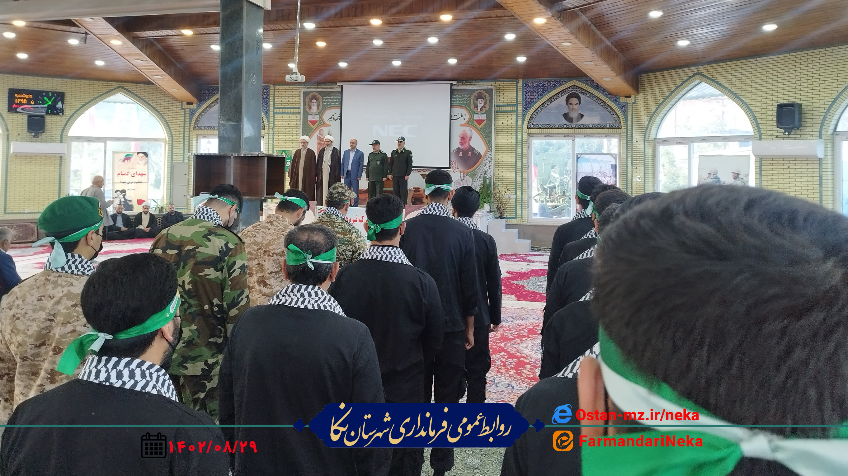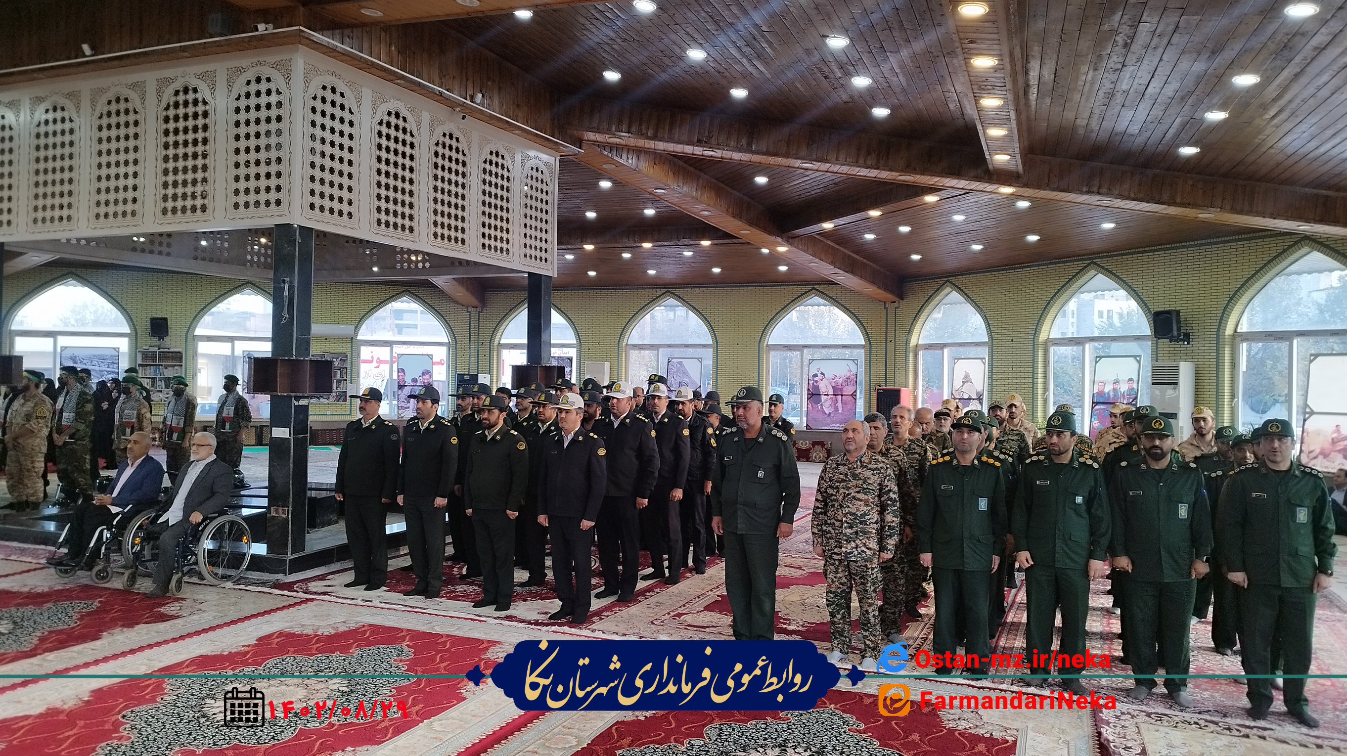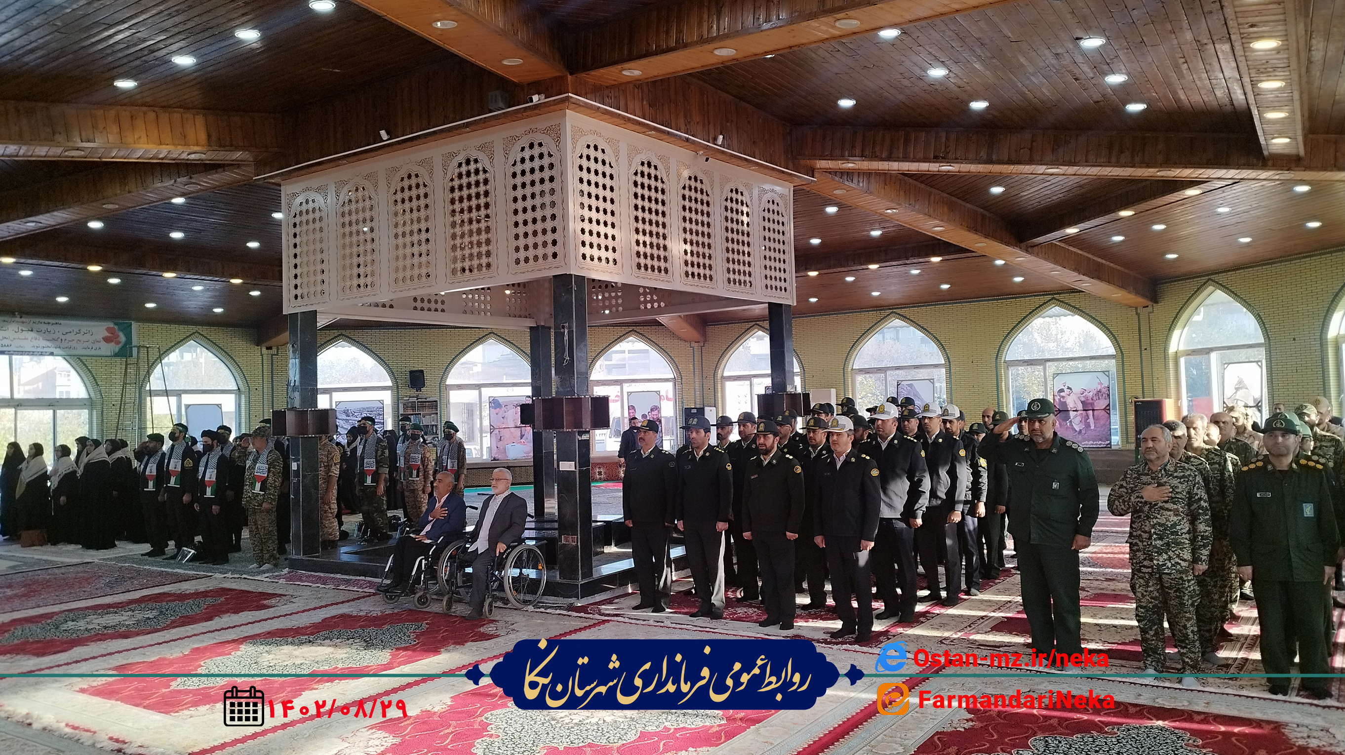 صبحگاه مشترک هفته بسیج نکا با حضور سرپرست فرمانداری، مسئولان استانی و شهرستانی در مزار شهدای گمنام این شهرستان برگزار گردید.