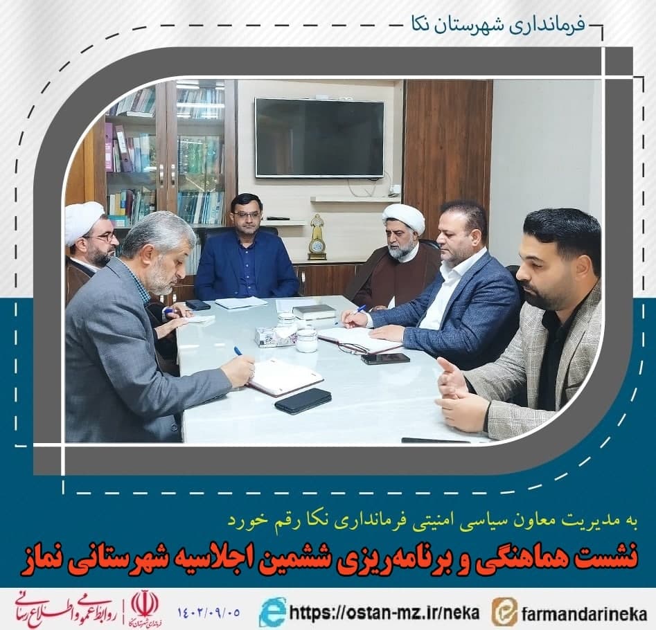 برنامهریزی ششمین اجلاسیه شهرستانی نماز نکا به ریاست معاون سیاسی امنیتی فرمانداری این شهرستان برگزار شد.