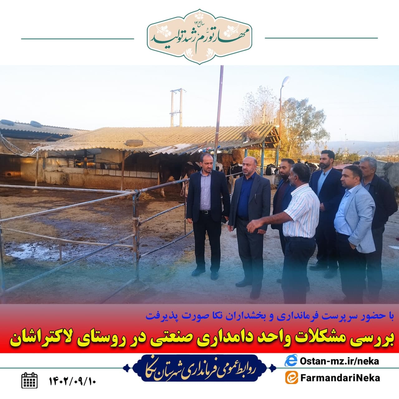 رمضانی سرپرست فرمانداری نکا با حضور در واحد دامداری صنعتی روستای لاکتراشان پیگیر مشکلات این تولیدکننده شد.