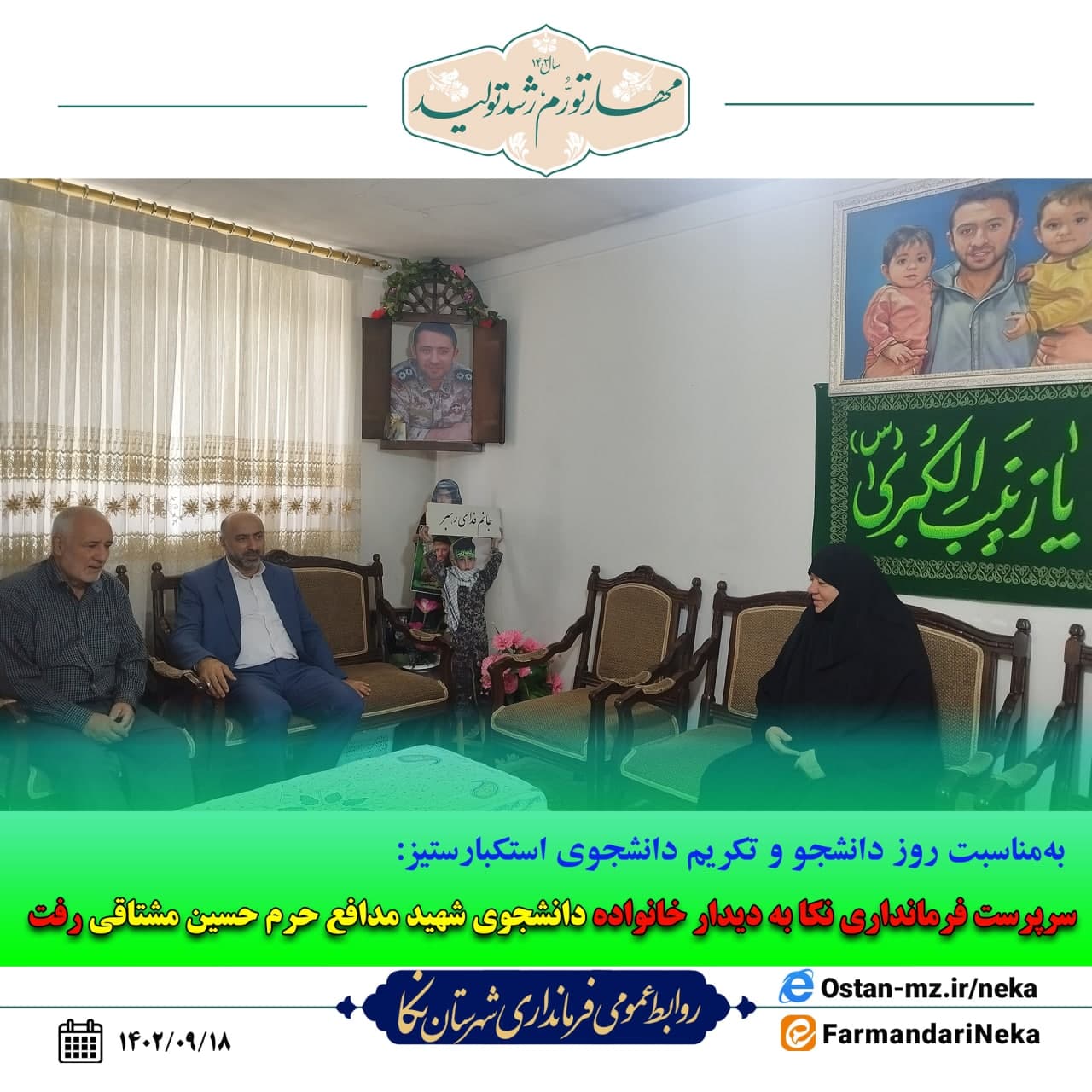 در راستای تکریم دانشجوی استکبارستیز و روز دانشجو رمضانی سرپرست فرمانداری نکا با حضور در بیت خانواده دانشجوی شهید مدافع حرم حسین مشتاقی این روز را گرامی داشت.