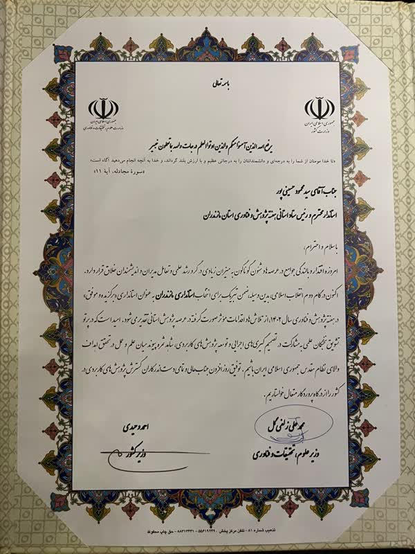 استانداری مازندران پارسال رتبه نخست پژوهش و نوآوری را در میان استانداریهای سراسر کشور کسب کرد و در بیست و سومین جشنواره تجلیل از پژوهشگران، فناوران و نوآوران از سید محمود حسینیپور به عنوان استاندار برتر تجلیل شد.