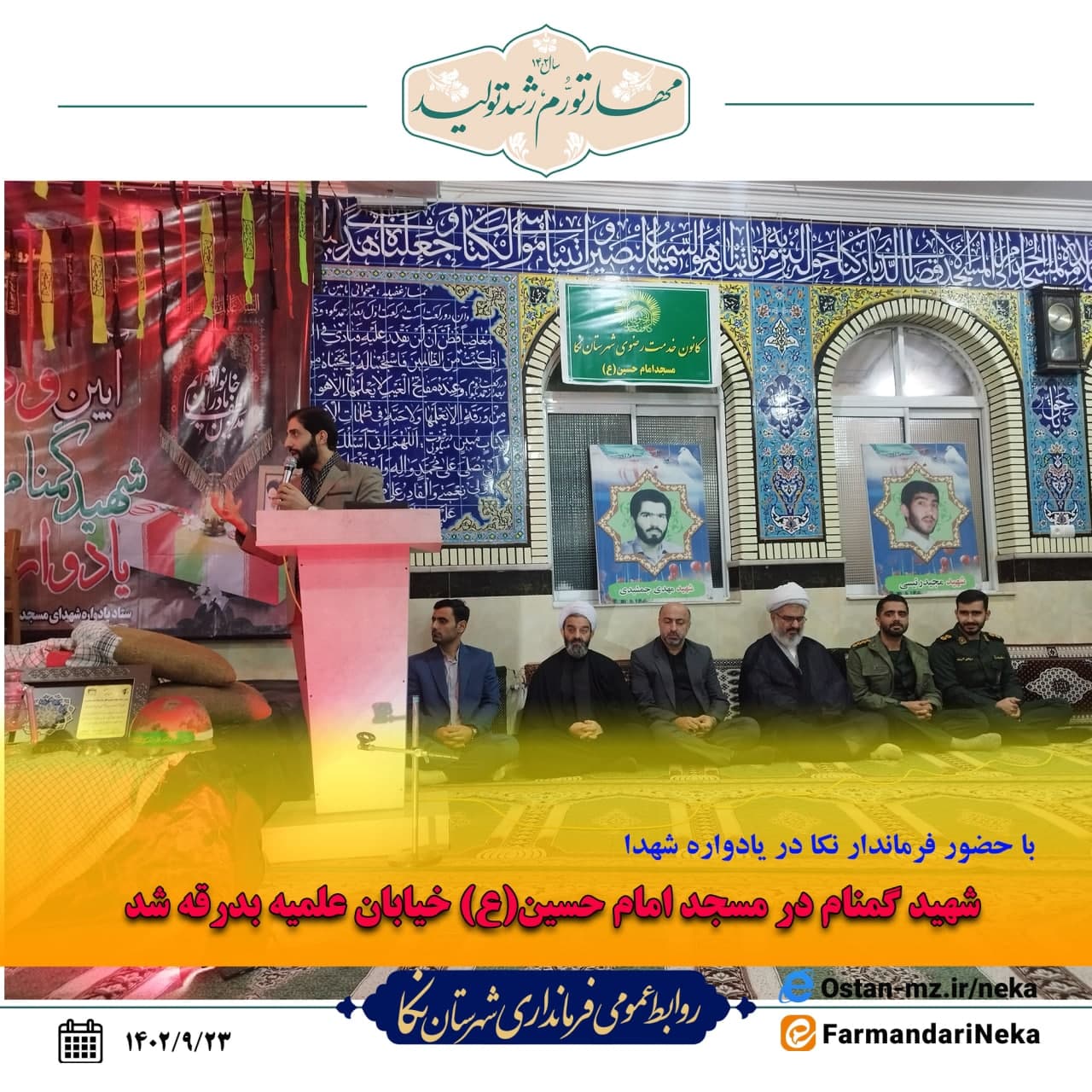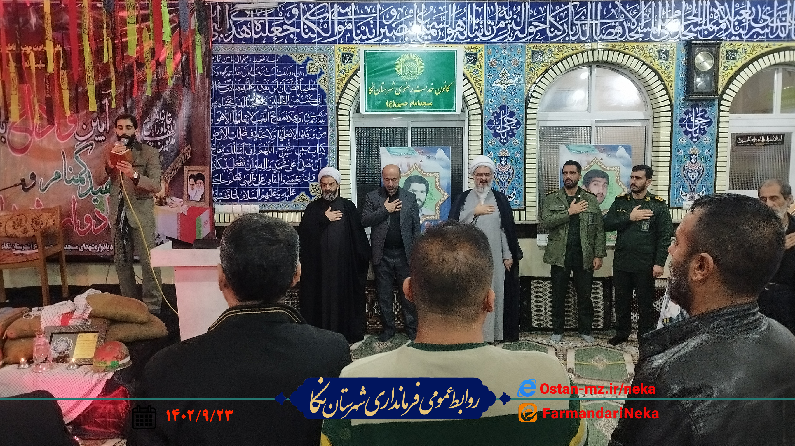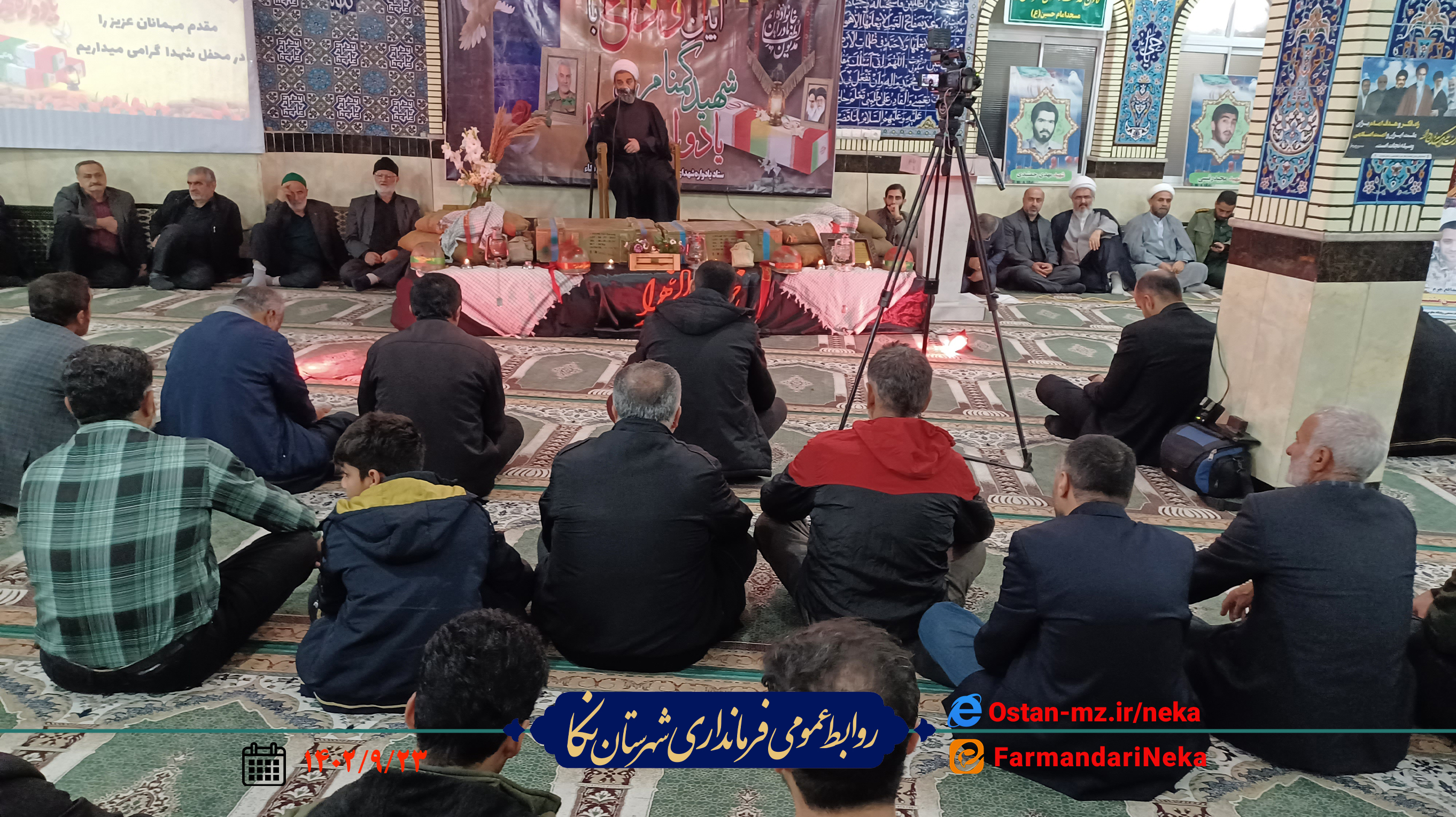 مرتضی رمضانی فرماندار نکا با همراهی برخی از مسئولان شهرستان در یادواره شهدایی که نمازگزاران مسجد امام حسین(ع) خیابان علمیه برگزار کردند حضور یافت.