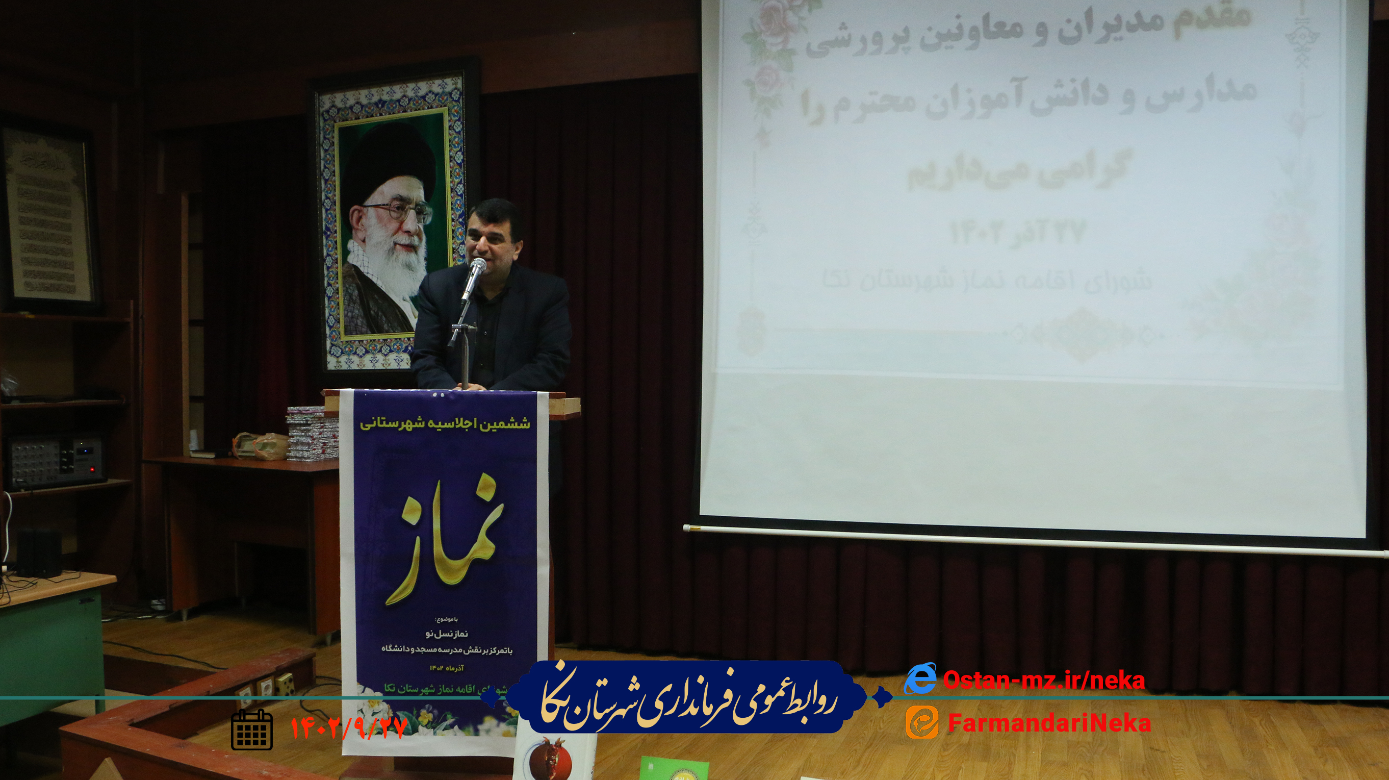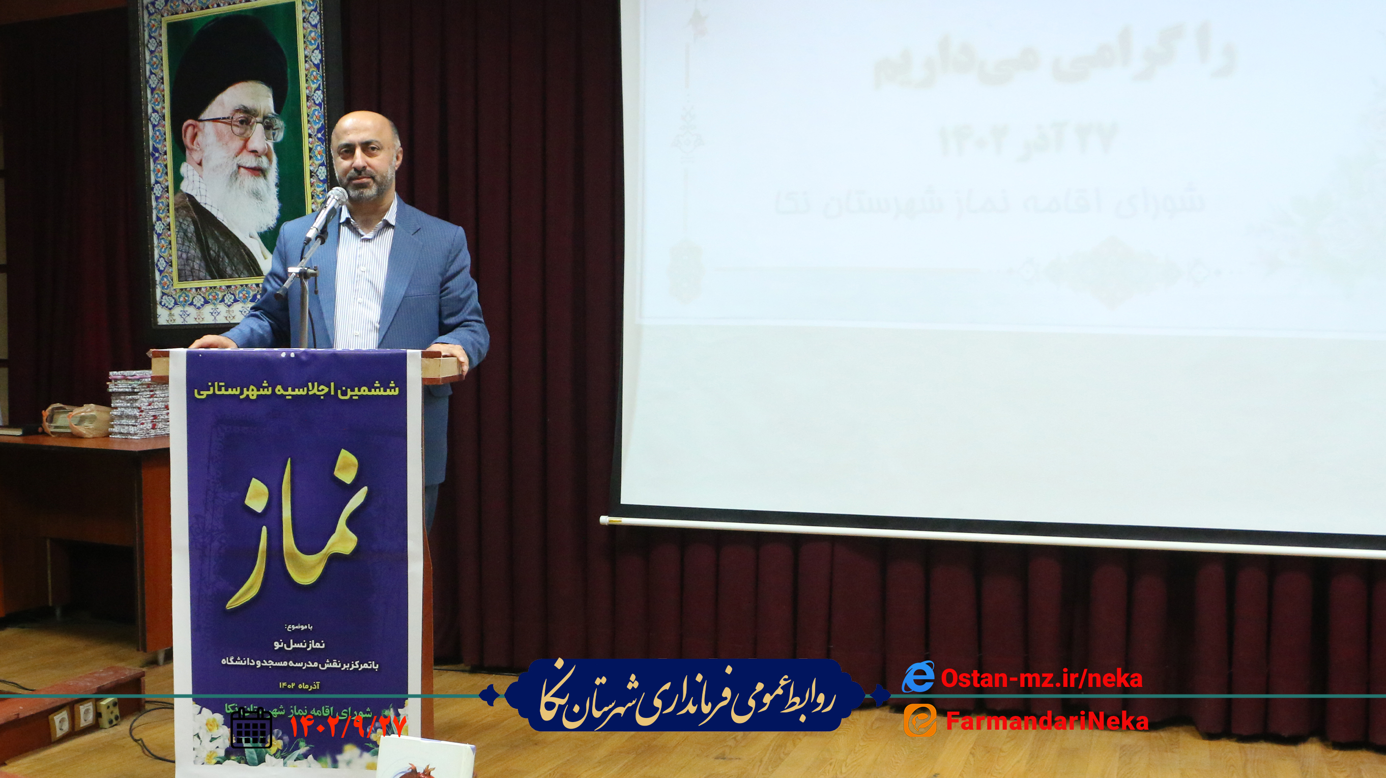 به گزارش روابطعمومی فرمانداری شهرستان نکا، پیش از ظهر امروز اجلاس ستاد اقامه نماز نکا با حضور مسئولان استانی و شهرستانی در محل پژوهشسرای آموزش و پرورش این شهرستان برگزار و مرتضی رمضانی فرماندار دیار نیکان که خود روحیه مطالبهگری در حوزه برپایی نماز جماعت دارد در این برنامه اظهار کرد: خداوند ۱۲۴ هزار پیامبر را برای ما مبعوث و در مسیر بندگی سرمایهگذاری کرد تا در راه عبادت او همت داشته باشیم.