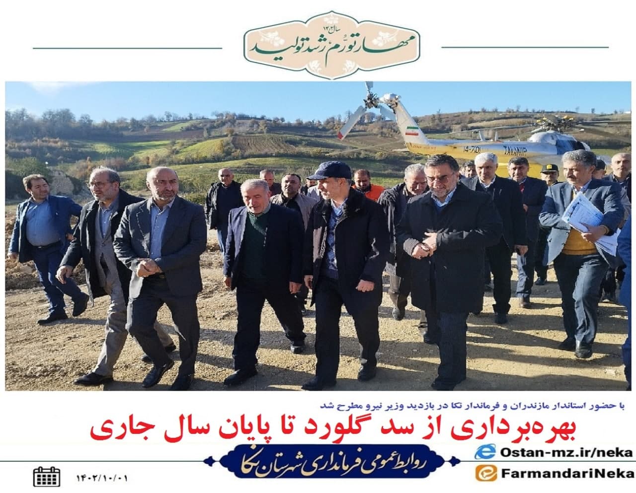 با حضور استاندار مازندران و فرماندار نکا، محرابیان وزیر نیرو به بازدید از اجرای طرح سد گلورد و پل قوسی این منطقه رفت.