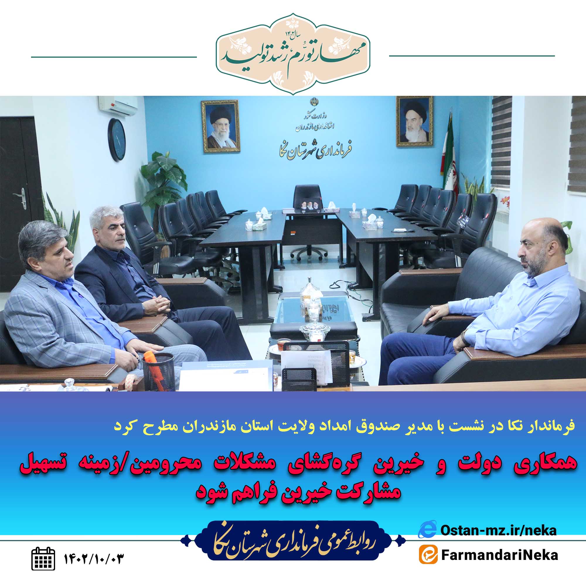 فرماندار نکا در نشست با مدیر صندوق امداد ولایت استان مازندران مطرح کرد