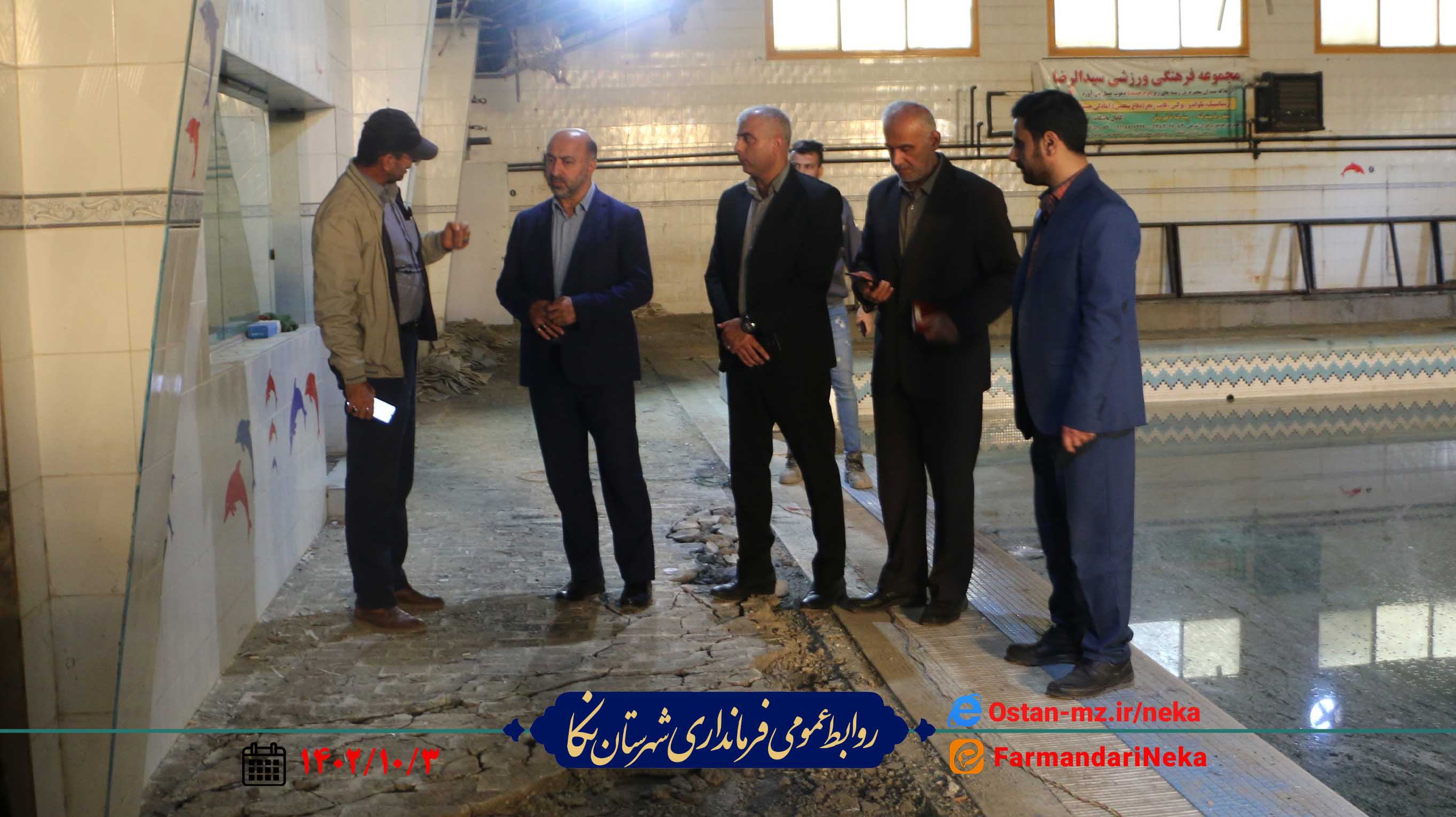 عصر امروز رمضانی فرماندار نکا با حضور در استخر اداره ورزش از روند اجرای طرح ساماندهی و بازسازی این مجموعه ورزشی بازدید کرد.