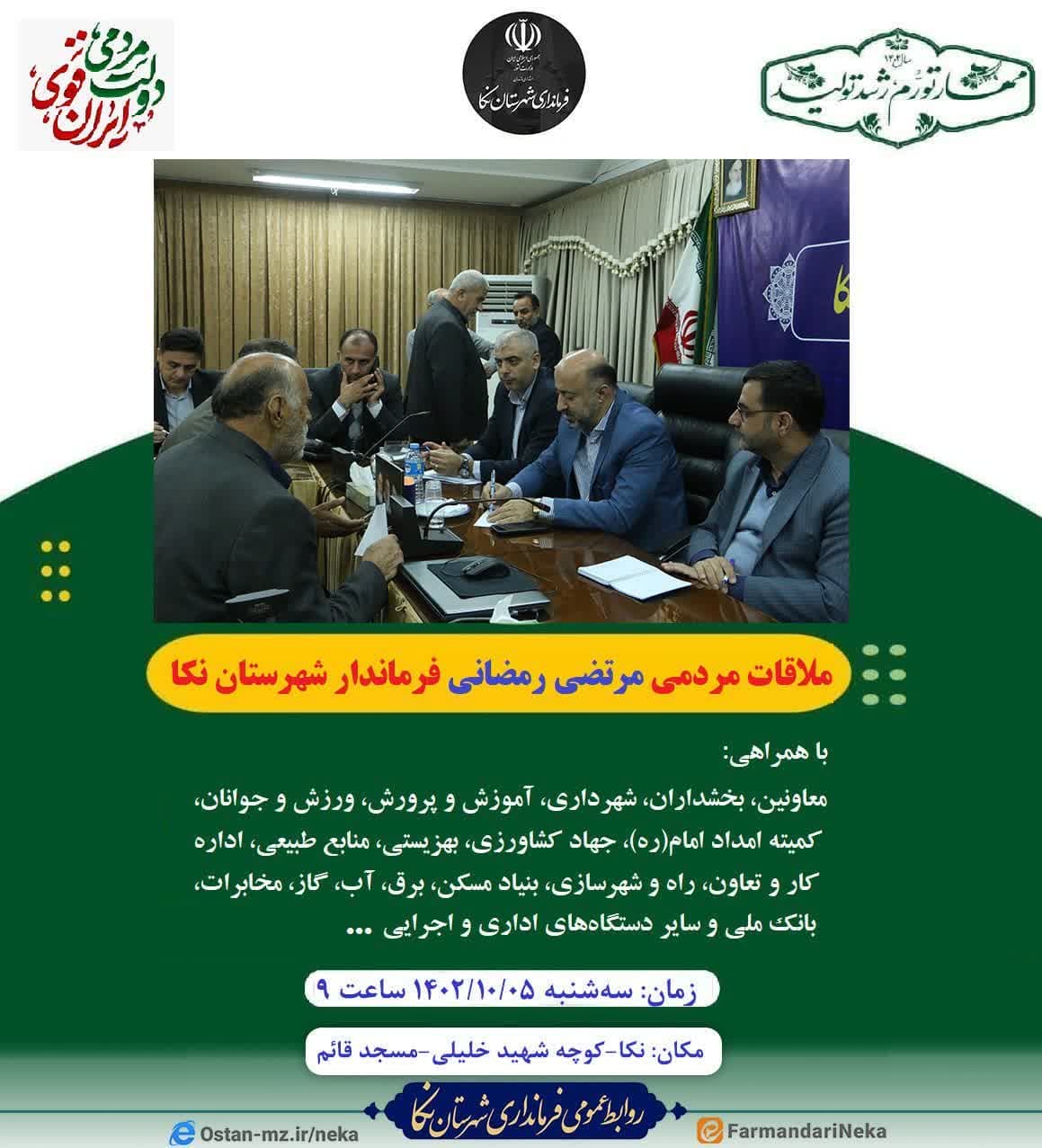 ملاقات مردمی مرتضی رمضانی فرماندار نکا با همراهی مدیران دستگاههای اداری و اجرایی شامل:
