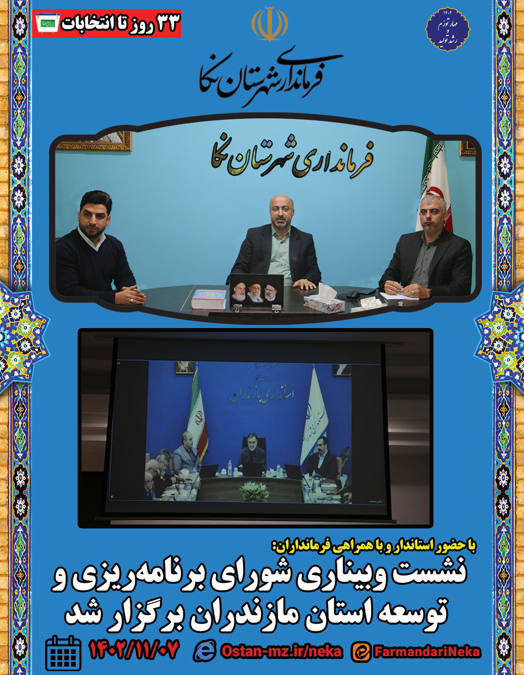 به گزارش روابطعمومی فرمانداری شهرستان نکا، صبح امروز نشست وبیناری شورای برنامهریزی و توسعه استان مازندران با حضور سیدمحمودحسینیپور استاندار، و با همراهی فرمانداران برگزار شد.