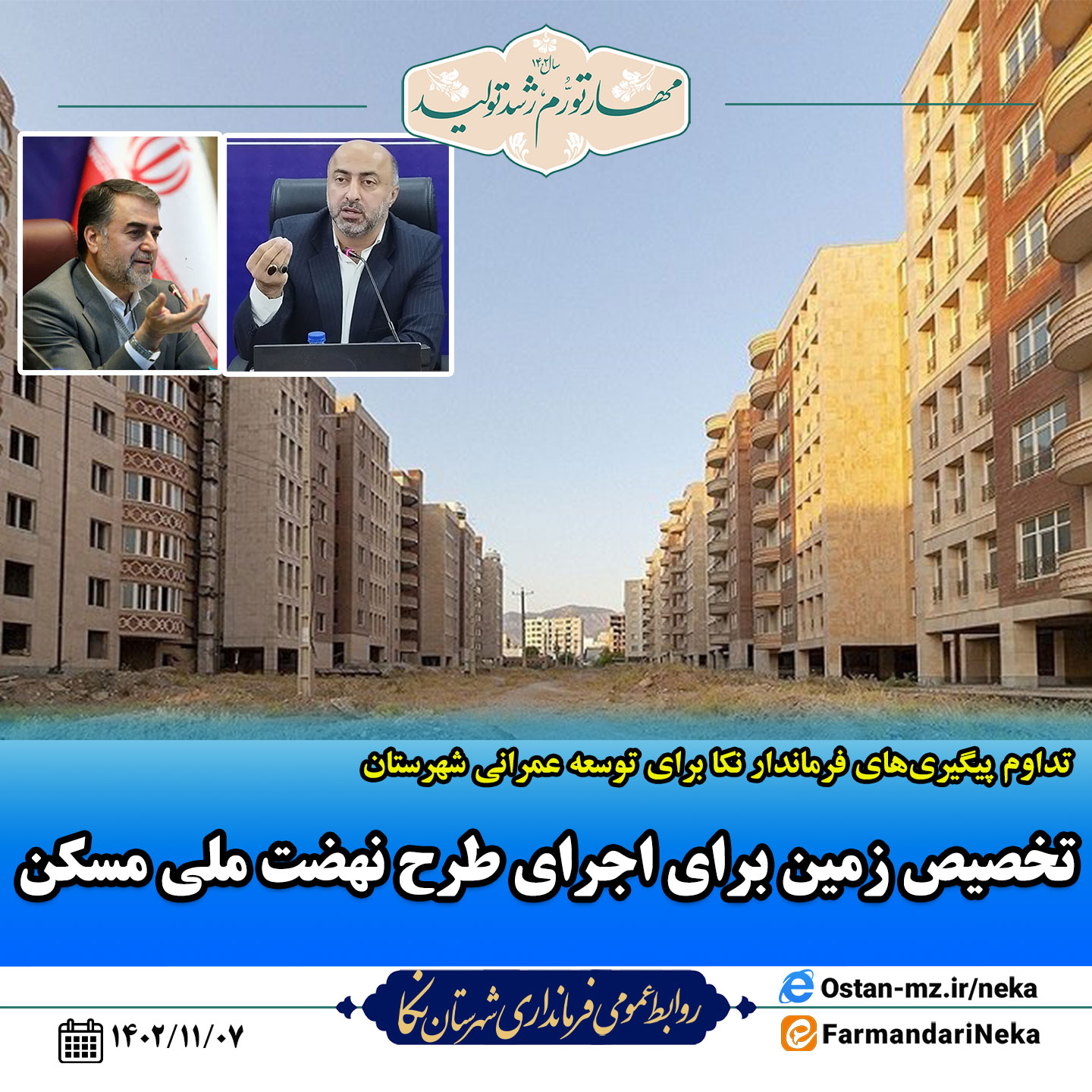 به گزارش روابطعمومی فرمانداری شهرستان نکا، در ادامهی پیگیرهای فرماندار نکا برای توسعه عمرانی شهرستان، رمضانی در نشست عصر امروز شورای عالی مسکن که به ریاست استاندار برگزار شد، پیگیر تخصیص زمین برای اجرای طرح نهضت ملی مسکن شد.