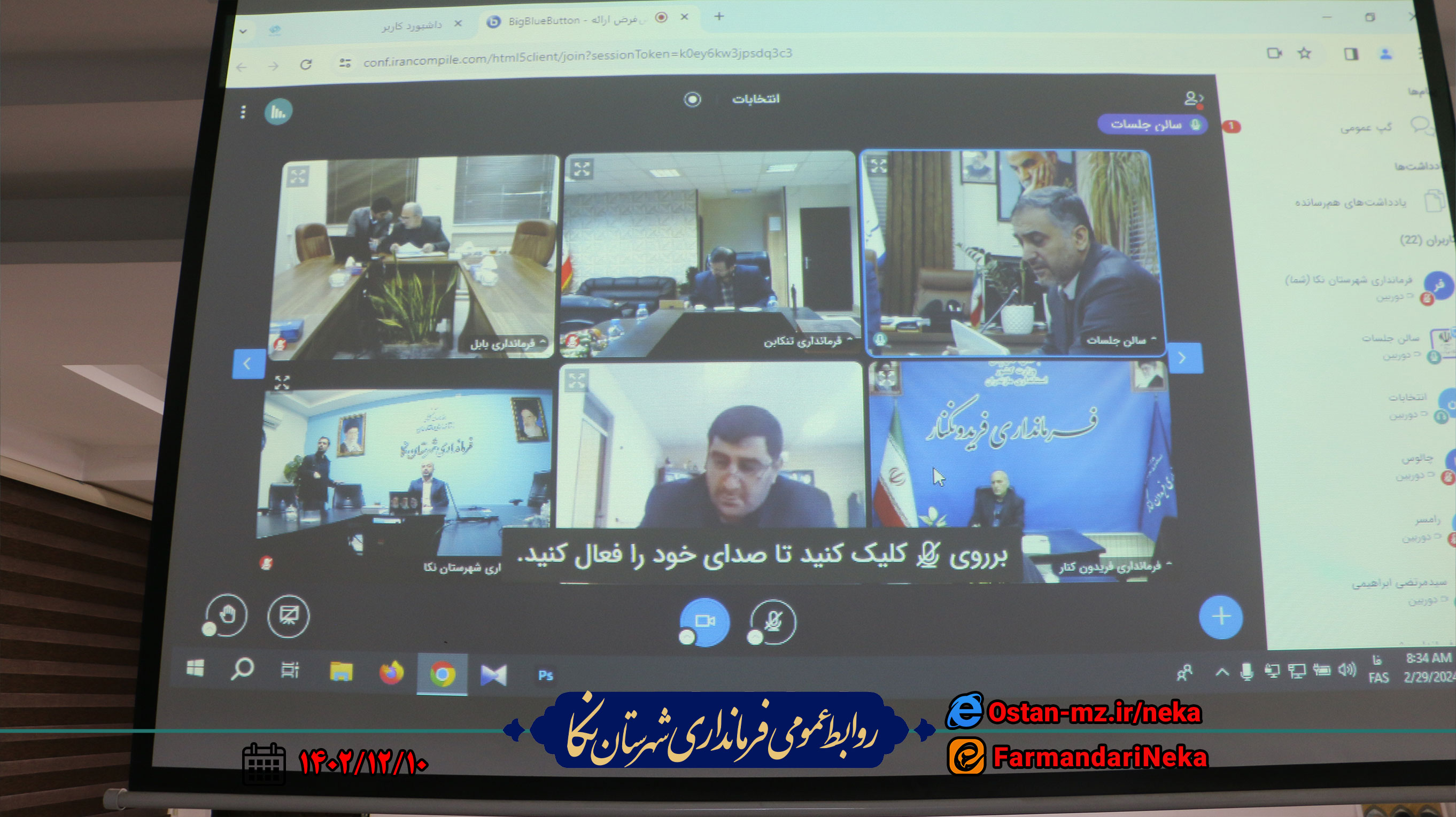 صبح امروز نشست وبیناری انتخابات استان مازندران به ریاست عزیززاده گرجی معاون سیاسی، امنیتی و اجتماعی استاندار و رئیس ستاد انتخابات استان مازندران و با حضور فرمانداران برگزار شد.