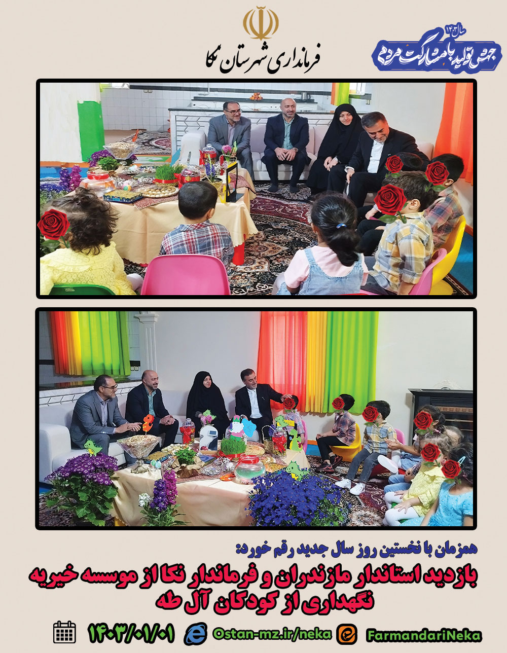 صبح امروز همزمان با نخستین روز سال ۱۴۰۳، سیدمحمودحسینیپور استاندار مازندران و مرتضیرمضانی فرماندار نکا و به همراه بریمانی مدیر کل بهزیستی استان مازندران از مرکز نگهداری از کودکان آل یاسین بازدید کردند.