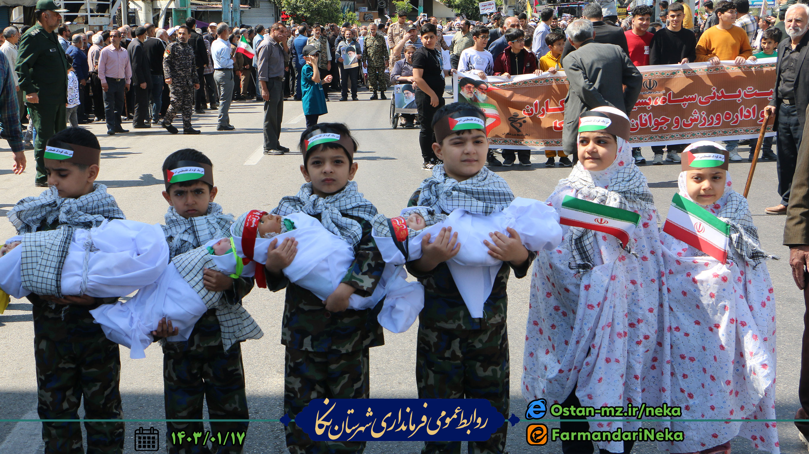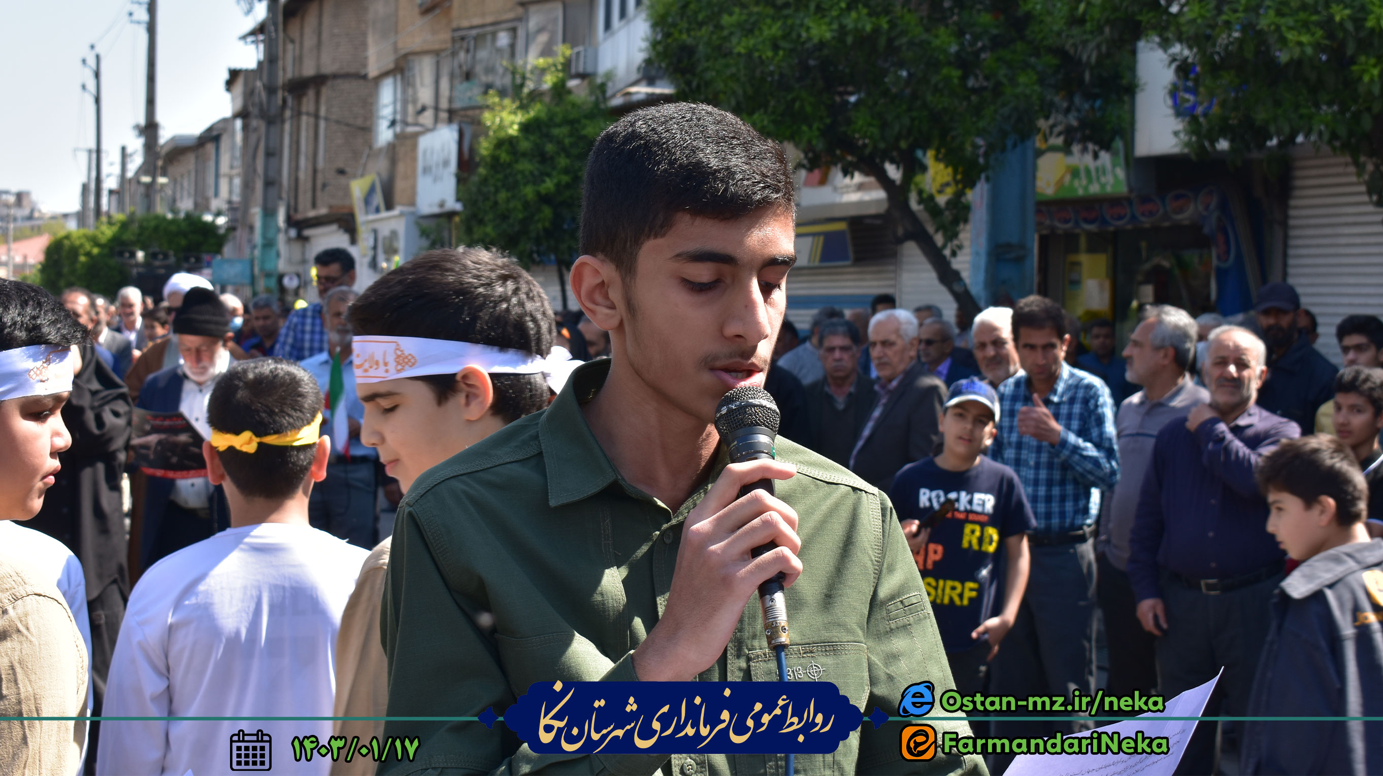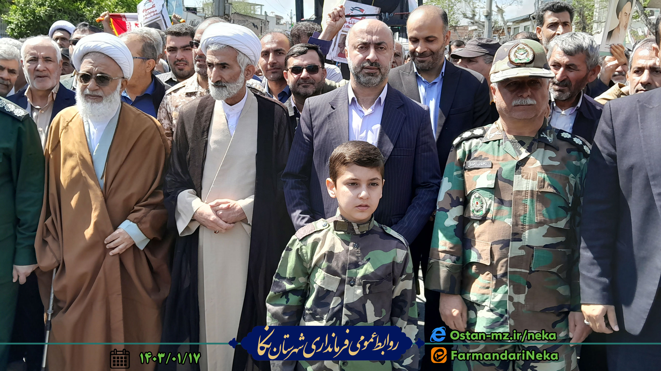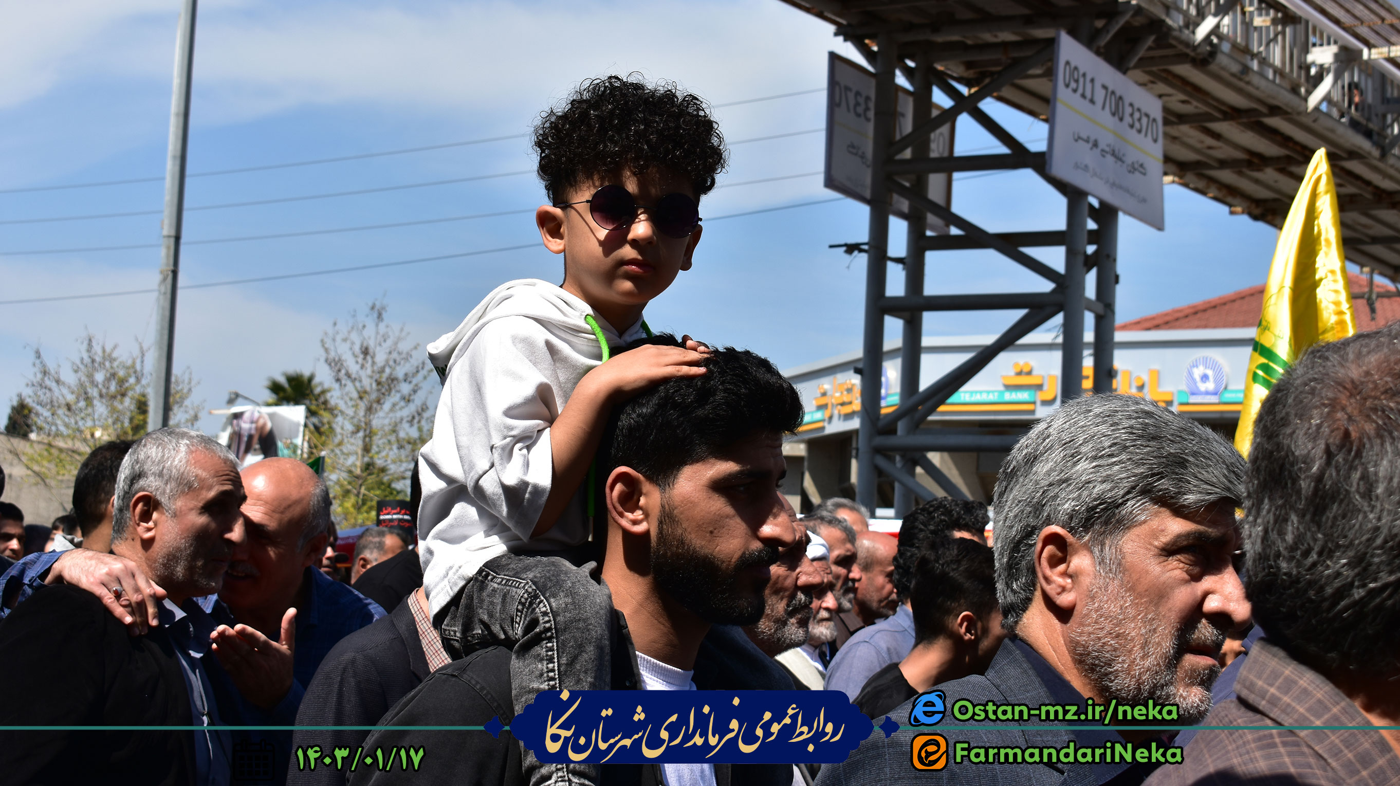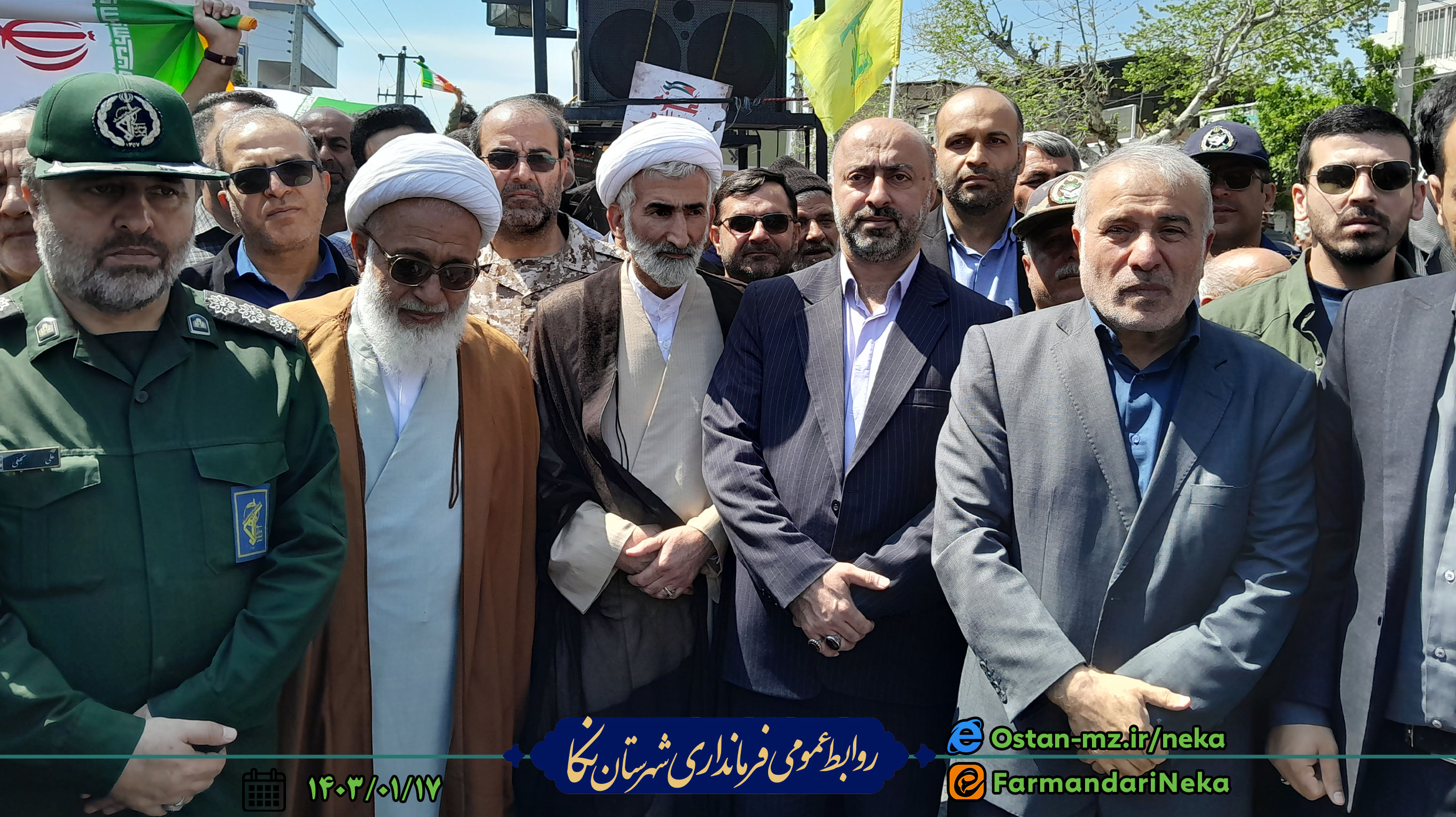 در این راهپیمایی، مردم شهرستان نکا، ضمن محکوم کردن جنایتهای رژیم صهیونیستی با سردادن شعارهای «اللهاکبر خامنهای رهبر»، «مرگ بر آمریکا» و «مرگ بر اسرائیل» از ناحیهو مقاومت بسیج شهرستان تا مصلی امام خمینی (ره) حمایت خودرا از مردم فلسطین و آزادسازی قدس اعلام کردند.