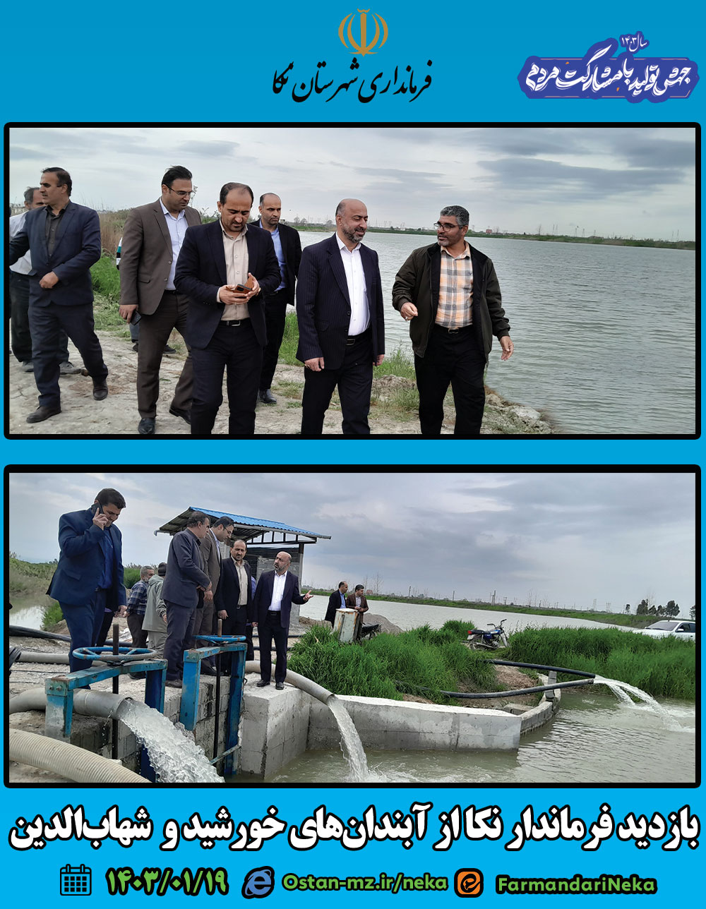 ظهر امروز مرتضیرمضانی فرماندار نکا به همراه جمشیدی بخشدار مرکزی با حضور در روستاهای خورشید و شهاب الدین بخش مرکزی از آببندانهای این دو روستا بازدید کرد.
