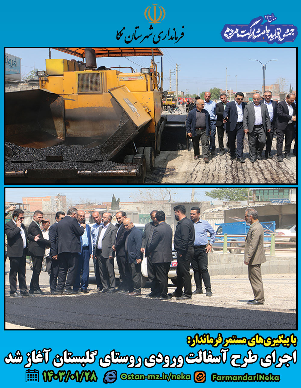 صبح امروز مرتضیرمضانی فرماندار نکا با حضور در ورودی ضلع جنوبی شهر واقع در روستای گلبستان، از روند اجرای آسفالت و ساماندهی این منطقه بازدید کرد.