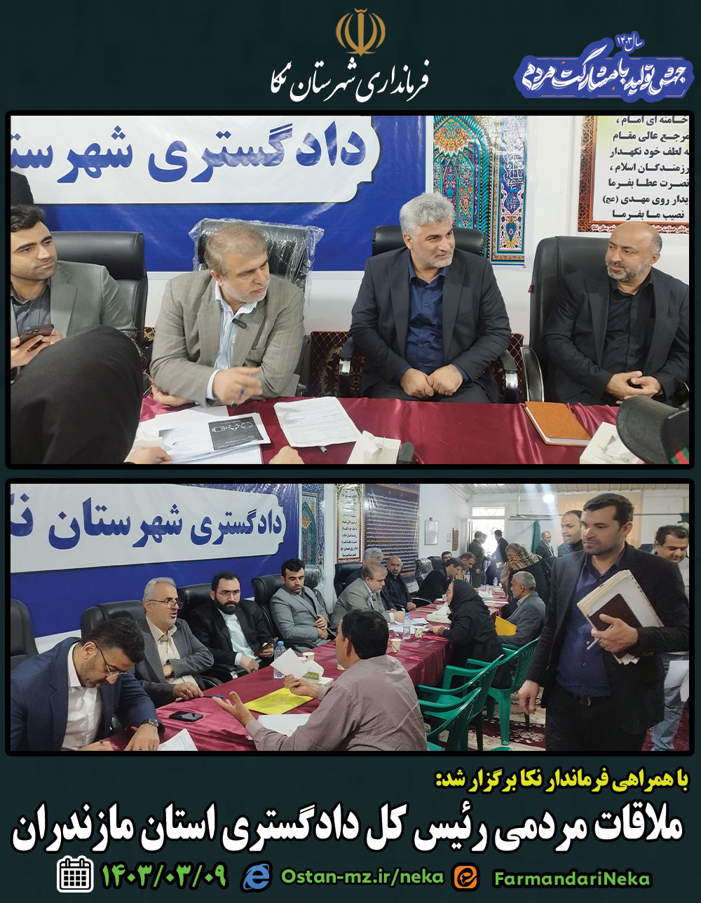 صبح امروز ملاقات مردمی عباسپوریانی رئیس کل دادگستری استان مازندران، با همراهی مرتضیرمضانی فرماندار نکا در دادگستری شهرستان نکا برگزار شد.