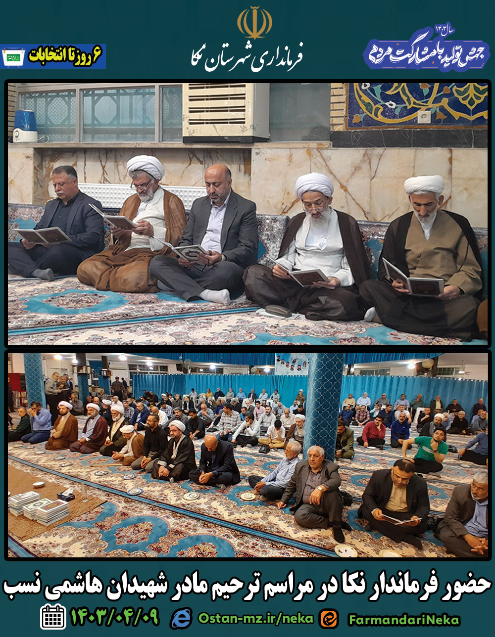 به گزارش روابط عمومی فرمانداری شهرستان نکا، مراسم ترحیم شادروان نرجسخاتونکوهستانی مادر شهیدانهاشمینسب با حضور آیتاللهمحمدباقرمحمدیلائینی نماینده ولی فقیه در استان مازندران، مرتضیرمضانی فرماندار نکا و حجتلاسلاموالمسلمینمحمدصادقمحمدی لائینی امام جمعه نکا در مسجد جامع برگزار شد.