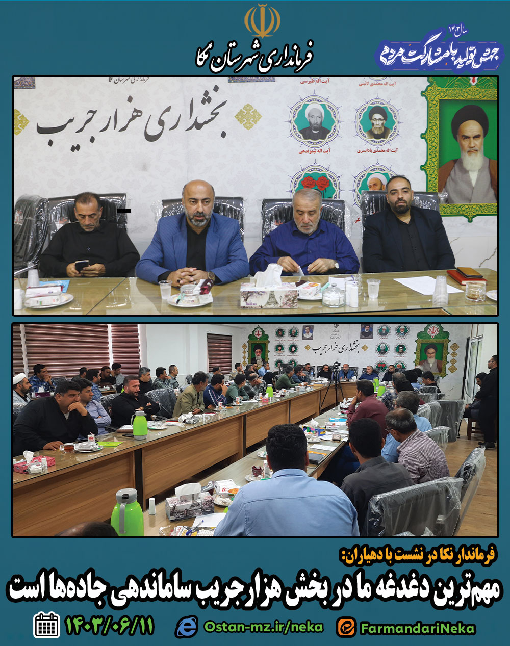 فرماندار نکا در این نشست با اشاره به اقدامات صورت گرفته در بخش هزارجریب شهرستان نکا خاطرنشان کرد: به لطف خدا و به برکت خدمات نظام، امروز اگرچه در برخی از روستاها عقبماندگیهایی وجود دارد، اما شاهد محرومیت در هیچ یک از روستاها نیستیم.