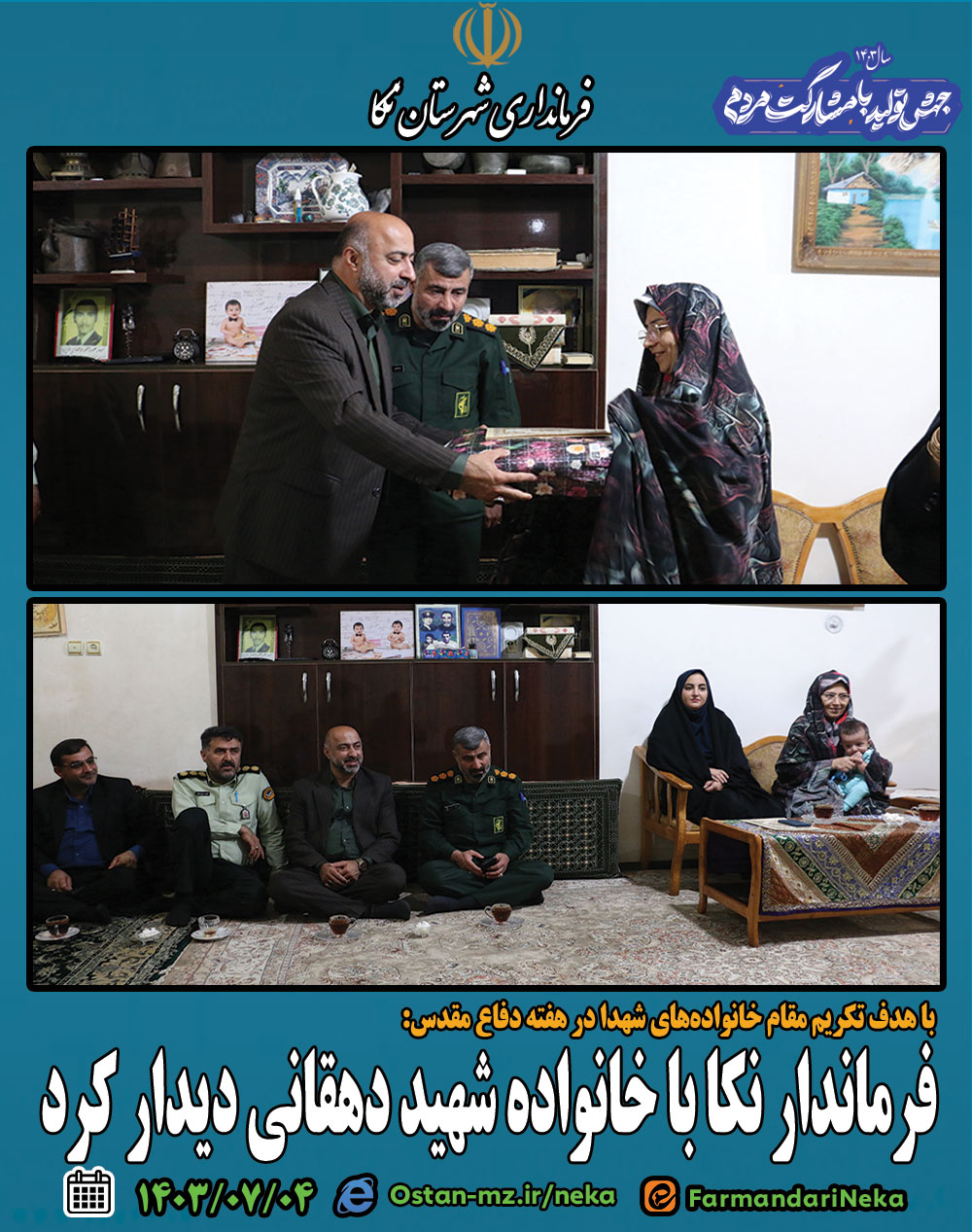 فرماندار نکا با خانواده شهید دهقانی دیدار کرد