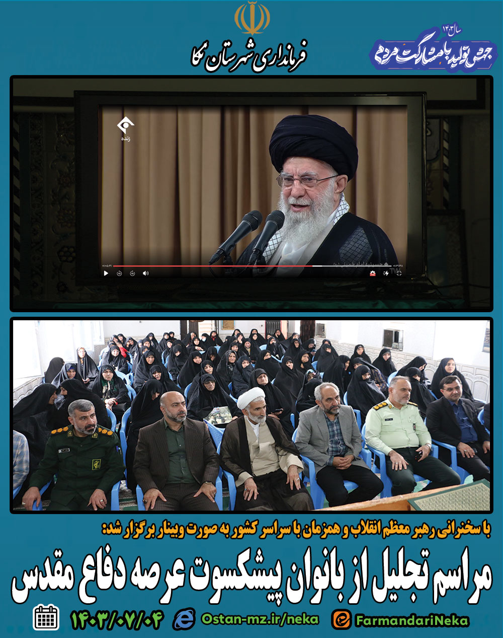 شایان ذکر است، در شهرستان نکا نیز این مراسم به صورت وبینار و با حضور مرتضیرمضانی فرماندار، #حجتالاسلاموالمسلمینمحمدصادقمحمدیلائینی امام جمعه شهرستان، مادران و همسران شهدا و جمعی از بانوان فعال در عرصه دفاع مقدس در نمازخانه ناحیه مقاومت بسیج برگزار شد.