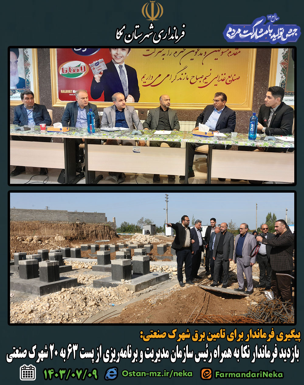 بازدید فرماندار نکا به همراه رئیس سازمان مدیریت و برنامهریزی از پست ۶۳ به ۲۰ شهرک صنعتی