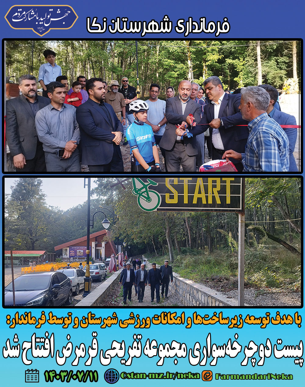 عصر امروز آیین افتتاح پیست دوچرخهسواری مجموعه تفریحی قرمرض، با هدف توسعه زیرساختها و امکانات ورزشی شهرستان نکا توسط مرتضیرمضانی فرماندار این شهرستان به همراه مسئولین استانی و شهرستانی و ورزشکاران برگزار شد.