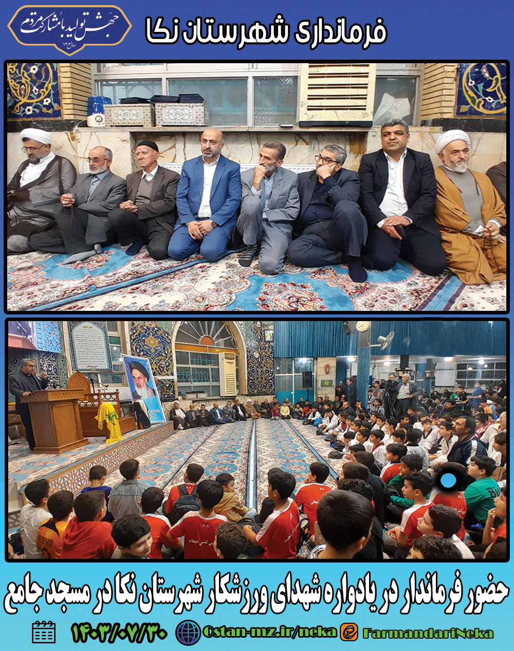 حضور فرماندار در یادواره شهدای ورزشکار شهرستان نکا در مسجد جامع