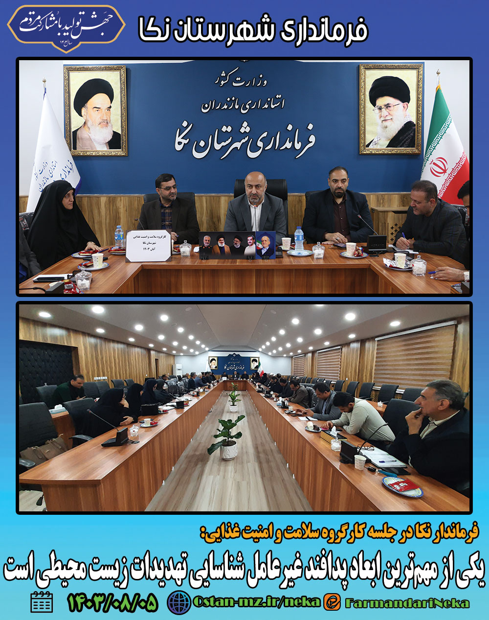 صبح امروز نشست کارگروه سلامت و امنیت غذایی شهرستان نکا به ریاست مرتضیرمضانی فرماندار نکا و با حضور سایر اعضای این کارگروه در فرمانداری برگزار شد.