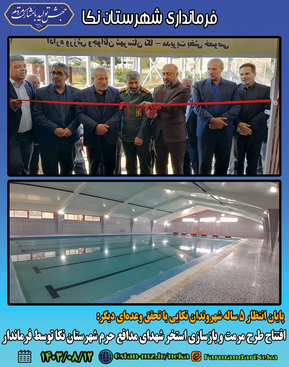 افتتاح طرح مرمت و بازسازی استخر شهدای مدافع حرم شهرستان نکا توسط فرماندار