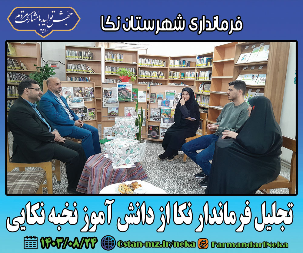 صبح امروز مرتضیرمضانی فرماندار نکا در پی حضور در کتابخانه باقرالعلوم از امیرحسیندوستدار دانش آموز نخبه نکایی که در آزمون سراسری ۱۴۰۳ موفق به قبولی در رشته پزشکی شد تجلیل کرد.