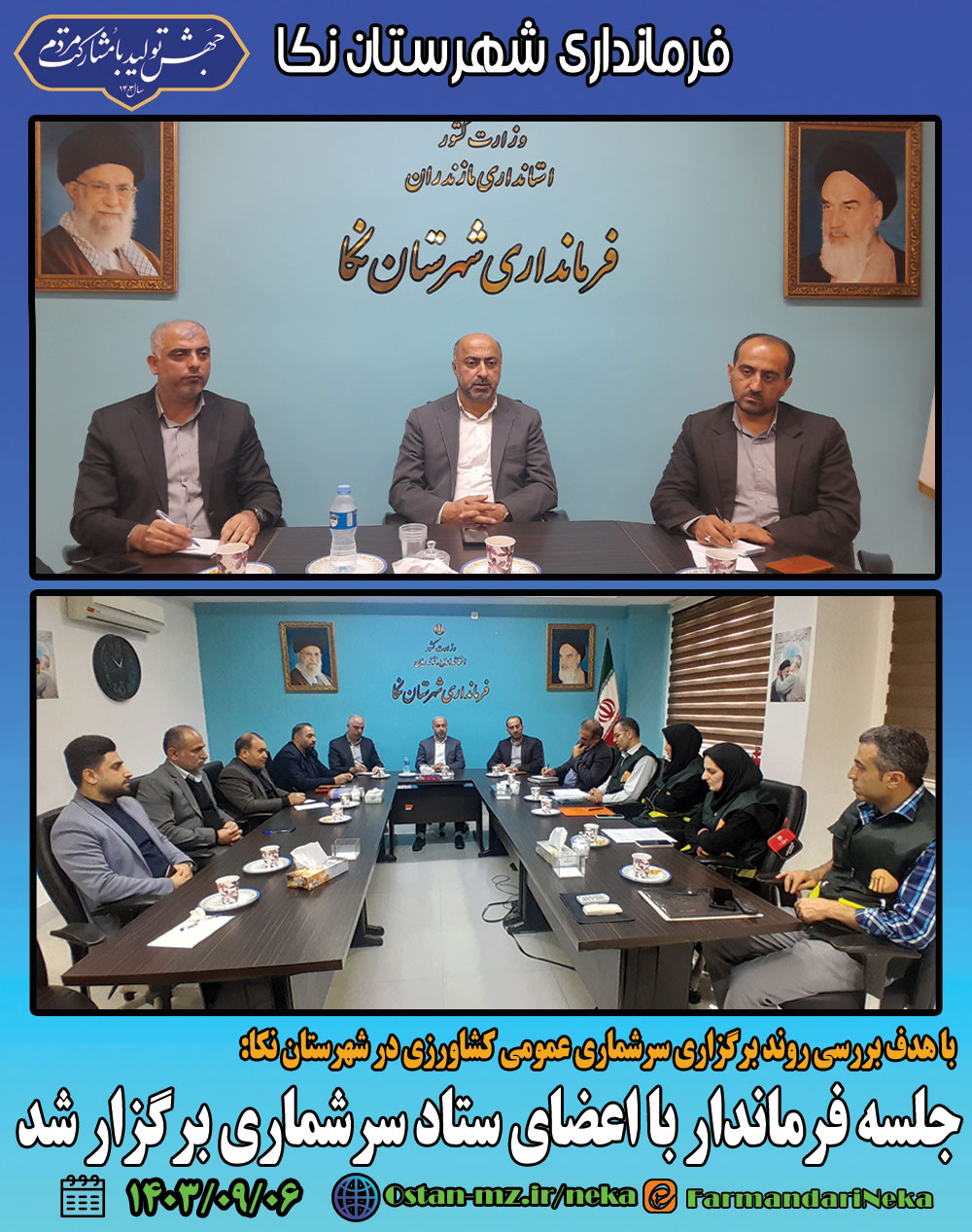 ظهر امروز نشست مرتضیرمضانی فرماندار نکا با اعضای ستاد سرشماری عمومی کشاورزی در فرمانداری برگزار شد.