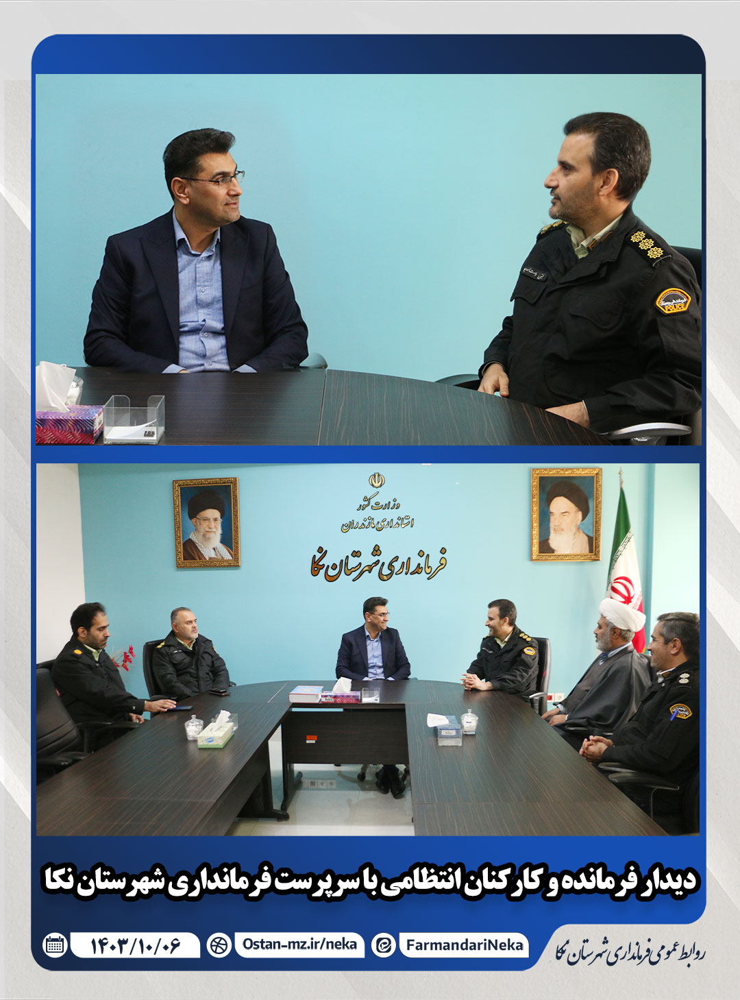 صبح امروز دیدار فرمانده و کارکنان انتظامی شهرستان نکا با مهدیداودی سرپرست فرمانداری شهرستان در فرمانداری رقم خورد.