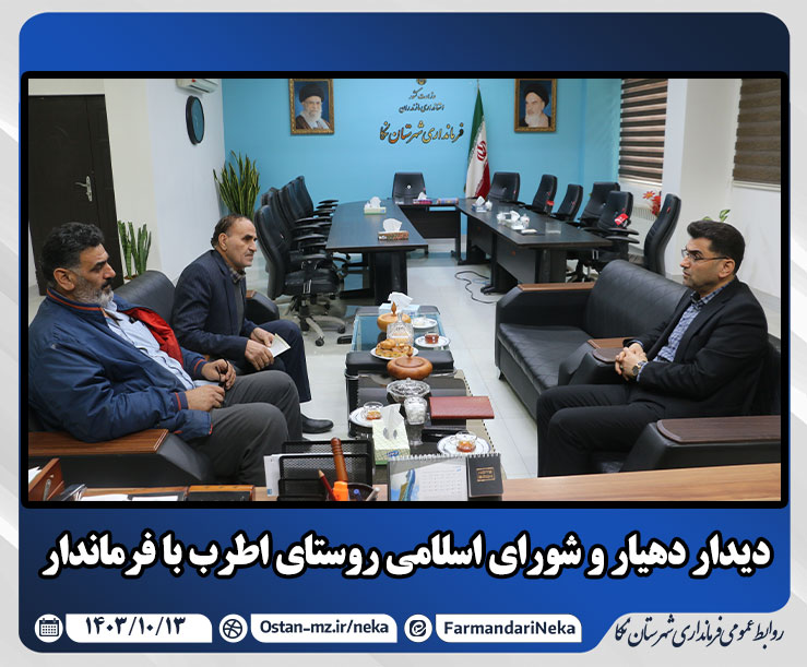 صبح روز پنجشنبه ۱۳ دی ماه ۱۴۰۳ دیدار دهیار و رئیس شورای اسلامی روستای اطرب بخش مرکزی شهرستان نکا با دکترداودی فرماندار این شهرستان بهمنظور احصای مسائل و معضلات موجود در روستا و پیگیری حل آن در فرمانداری رقم خورد.
