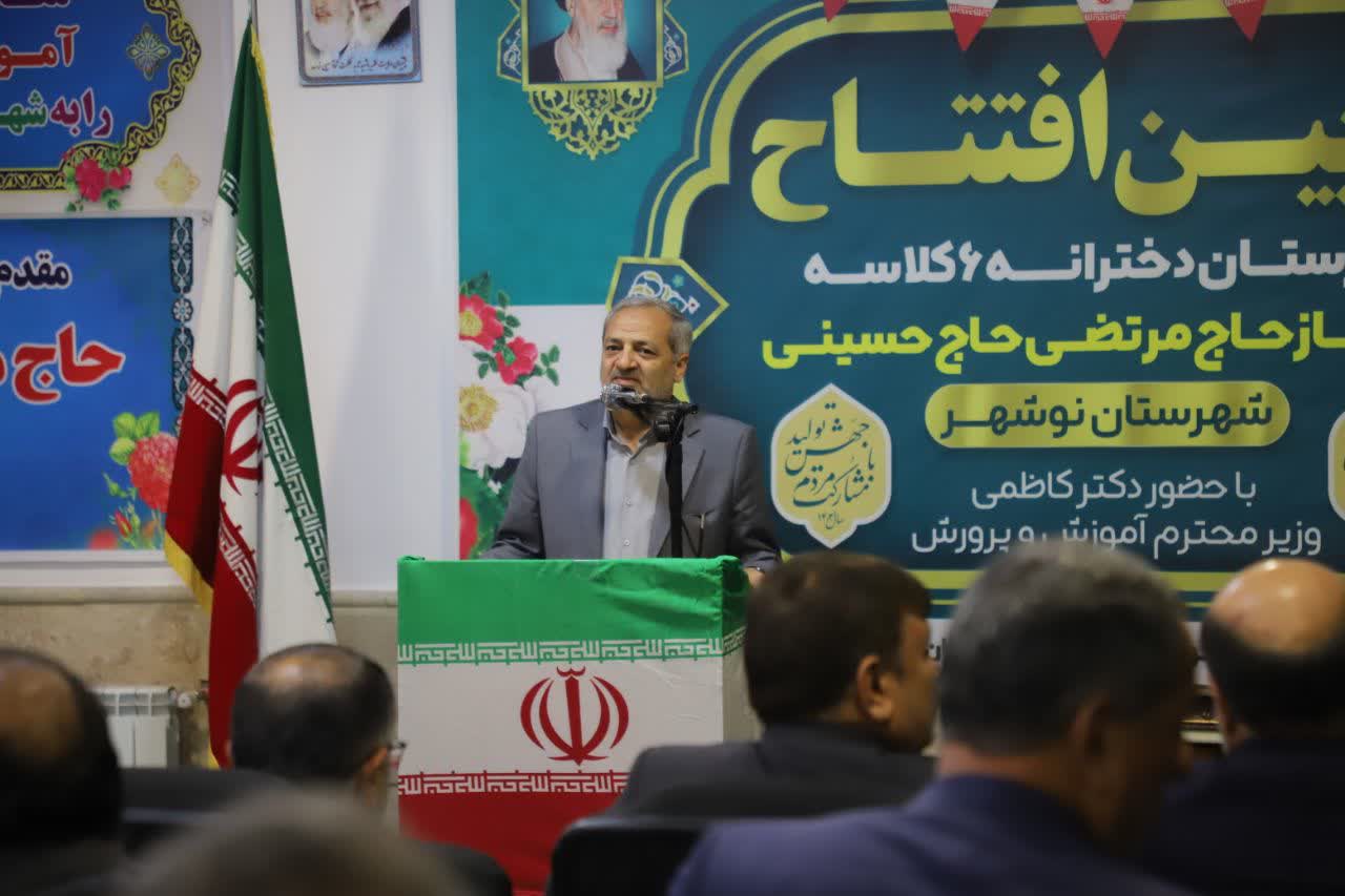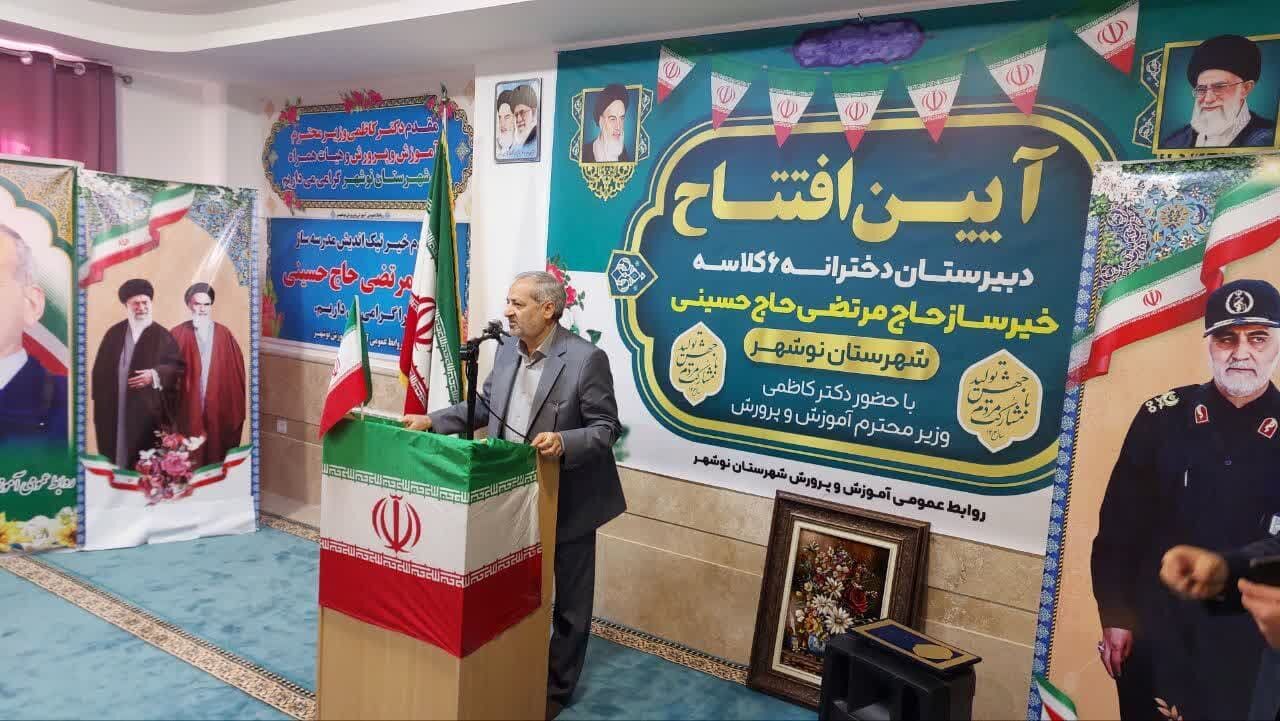 آئین افتتاح مدرسه راهنمایی خیرساز حاج حسینی نوشهر با حضور وزیر آموزش و پرورش و استاندار مازندران: