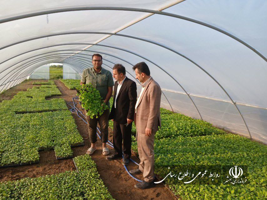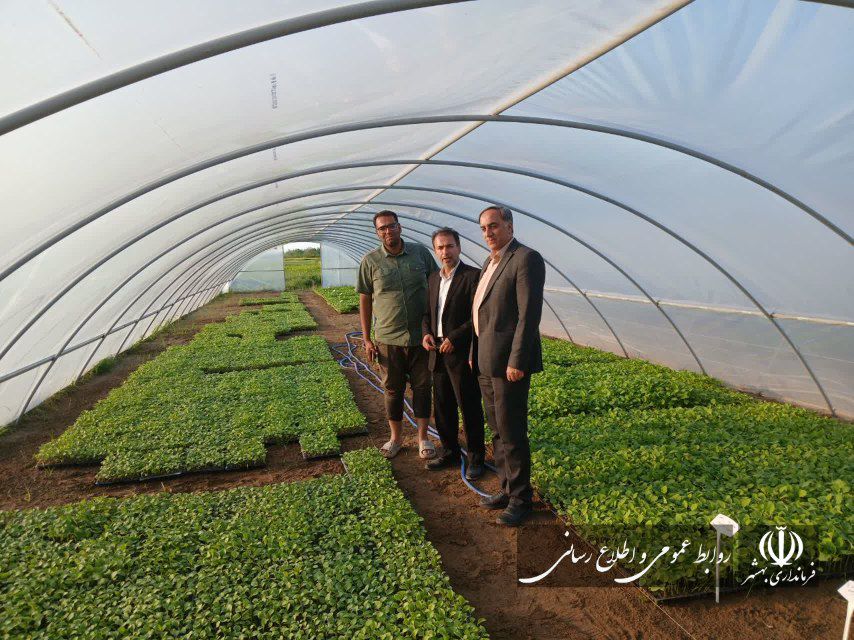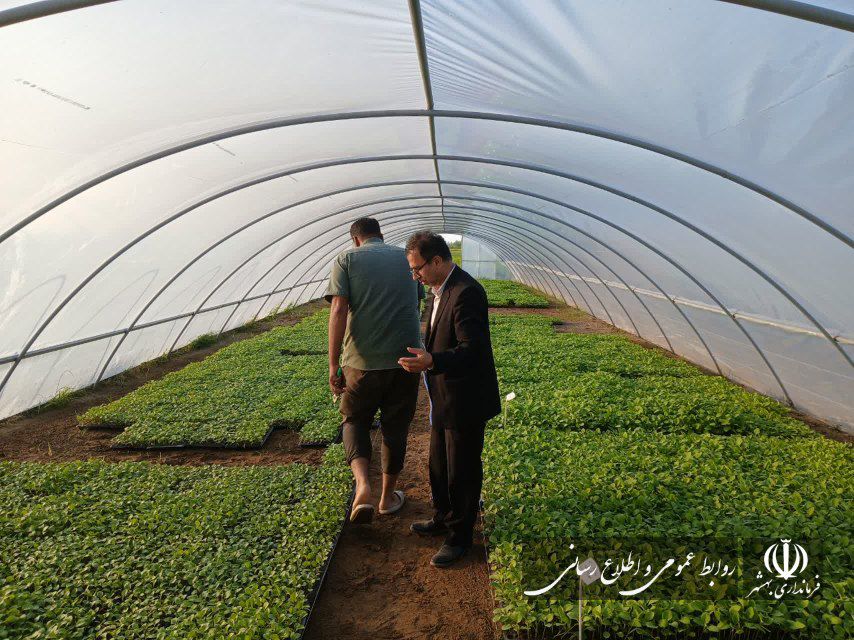 بازدید مهندس حامدی فرماندار بهشهر و معاونین از گلخانه پرورش نهال صیفیجات با هدف بهرهگیری از تجربیات موفق