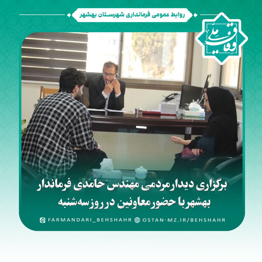 جلسه دیدار چهره به چهره مردمی با فرماندار شهرستان بهشهر، روز سهشنبه با حضور مهندس محمد حامدی و معاونین وی در محل فرمانداری برگزار شد. در این نشست، شهروندان مسائل و دغدغههای خود را به صورت مستقیم با مسئولان شهرستان مطرح کردند.