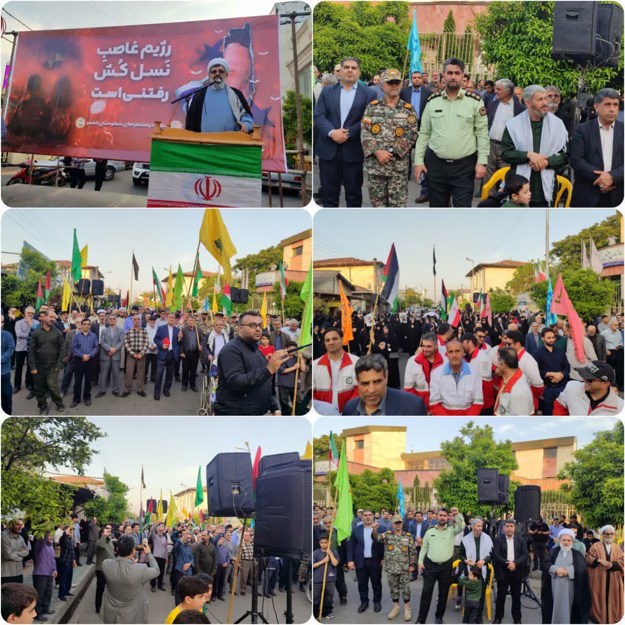 حضور فرماندار و مسئولین درتجمع مردم بابلسر در حمایت از مردم مظلوم غزه