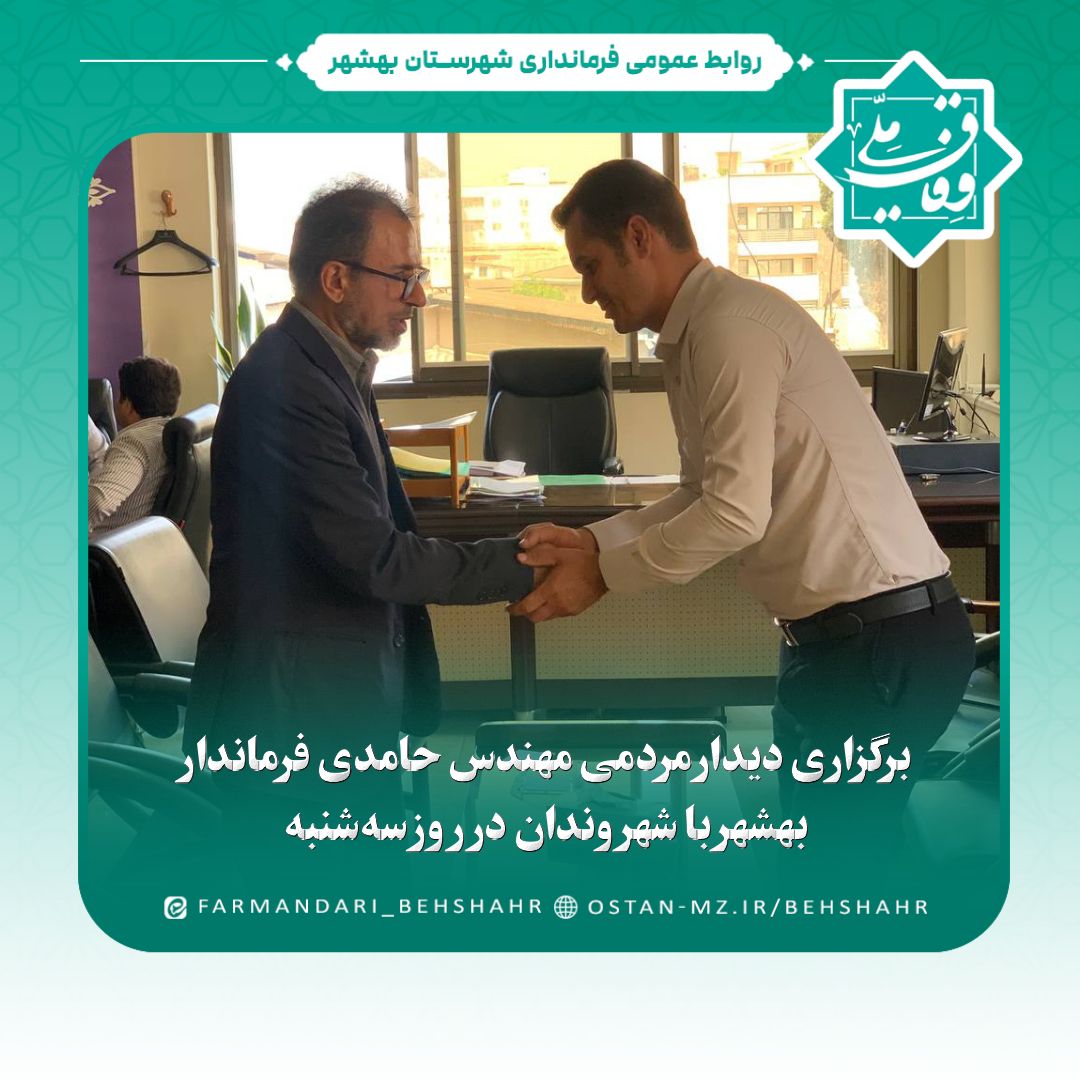 برنامه دیدار مردمی از جمله سیاستهای جاری در فرمانداری بهشهر است که بهصورت منظم و با هدف پاسخگویی مستقیم به مردم و تسهیل در فرایند رسیدگی به مشکلات اقشار مختلف جامعه برگزار میشود.