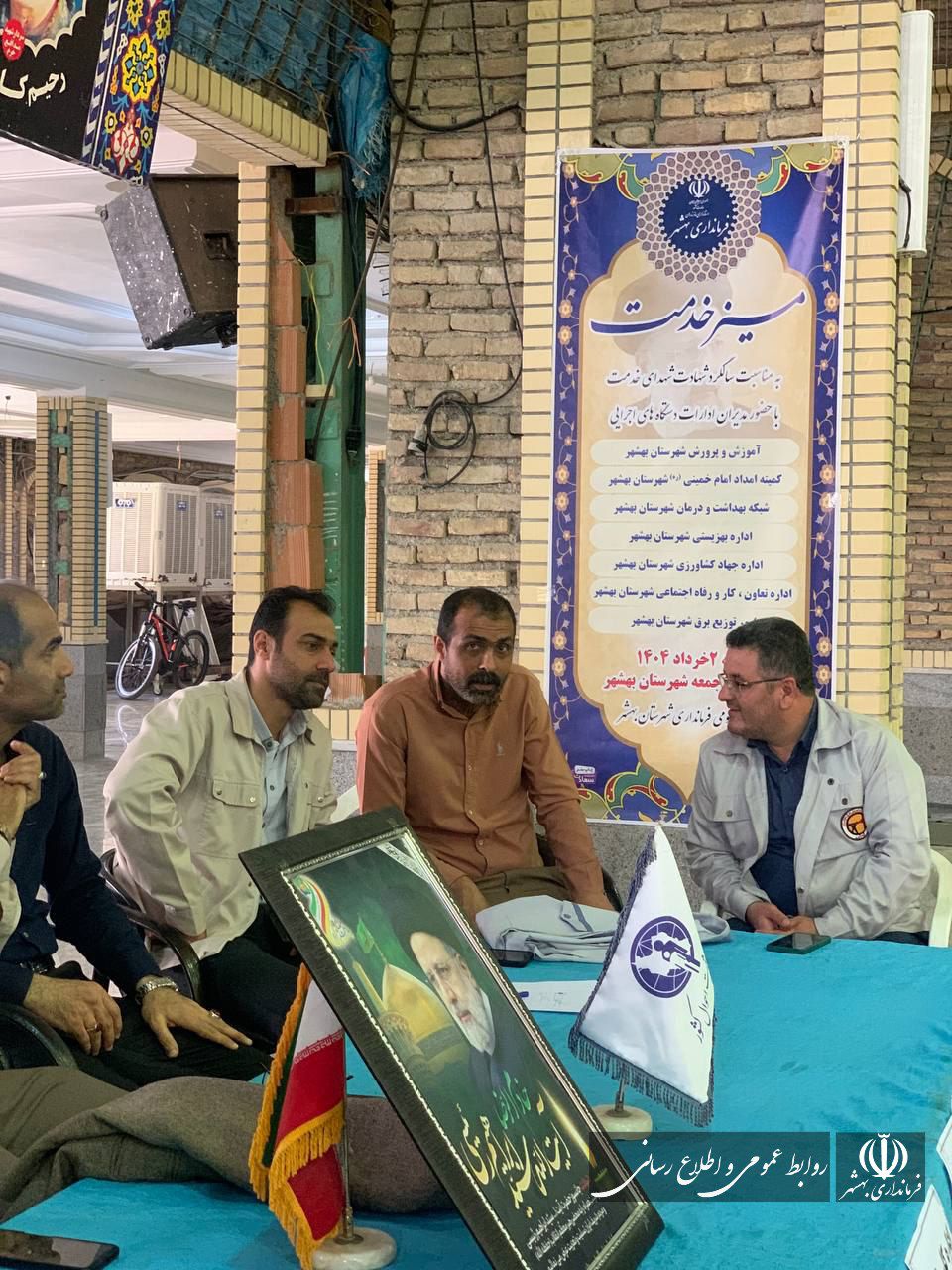 در آستانه گرامیداشت یاد و خاطره شهدای خدمت، میز خدمت شهرستان بهشهر روز جمعه ۲ خرداد ۱۴۰۴ با حضور پررنگ مدیران و مسئولان اجرایی در محل مصلی نماز جمعه برگزار شد. در این رویداد مردمی، ادارات مختلف شهرستان از جمله آموزش و پرورش، کمیته امداد امام خمینی (ره)، شبکه بهداشت و درمان، اداره بهزیستی، جهاد کشاورزی، تعاون، کار و رفاه اجتماعی و امور توزیع برق حضور داشتند و به طور مستقیم پاسخگوی شهروندان بودند.