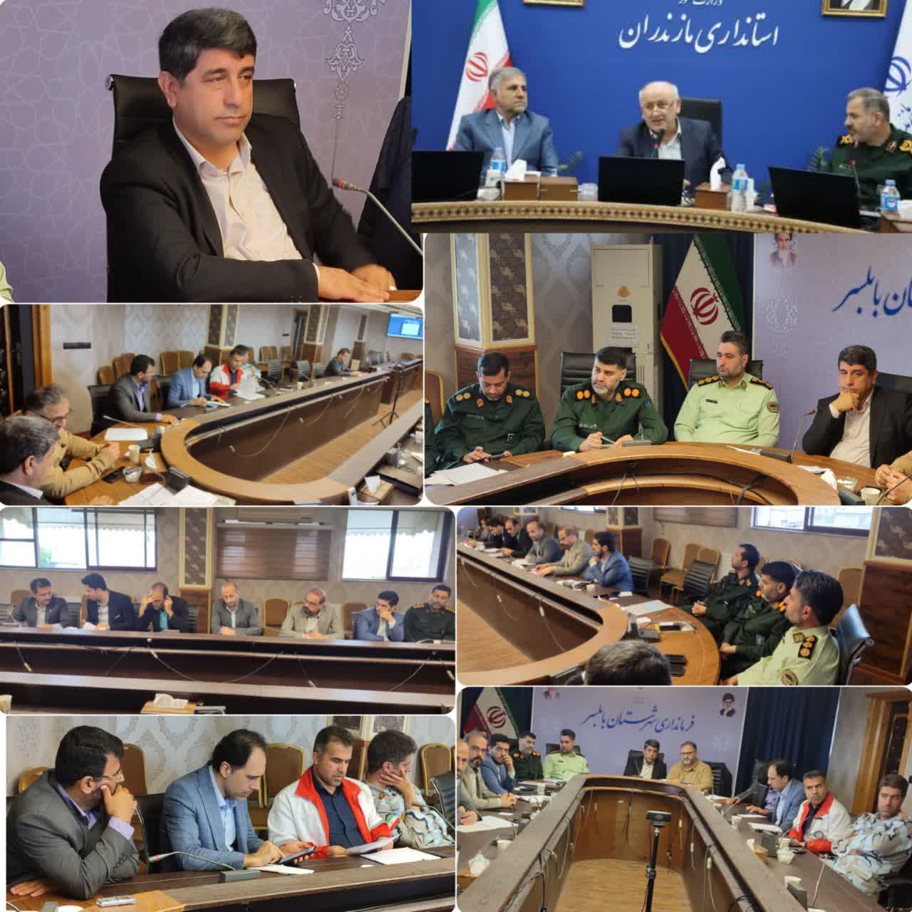 🔸️این جلسه بهطور هم زمان در فرمانداریهای سراسر استان برگزار گردید و در شهرستان بابلسر به ریاست قربانعلی ولیزاده فرماندار این شهرستان در محل سالن جلسات فرمانداری بر عهده گرفت.