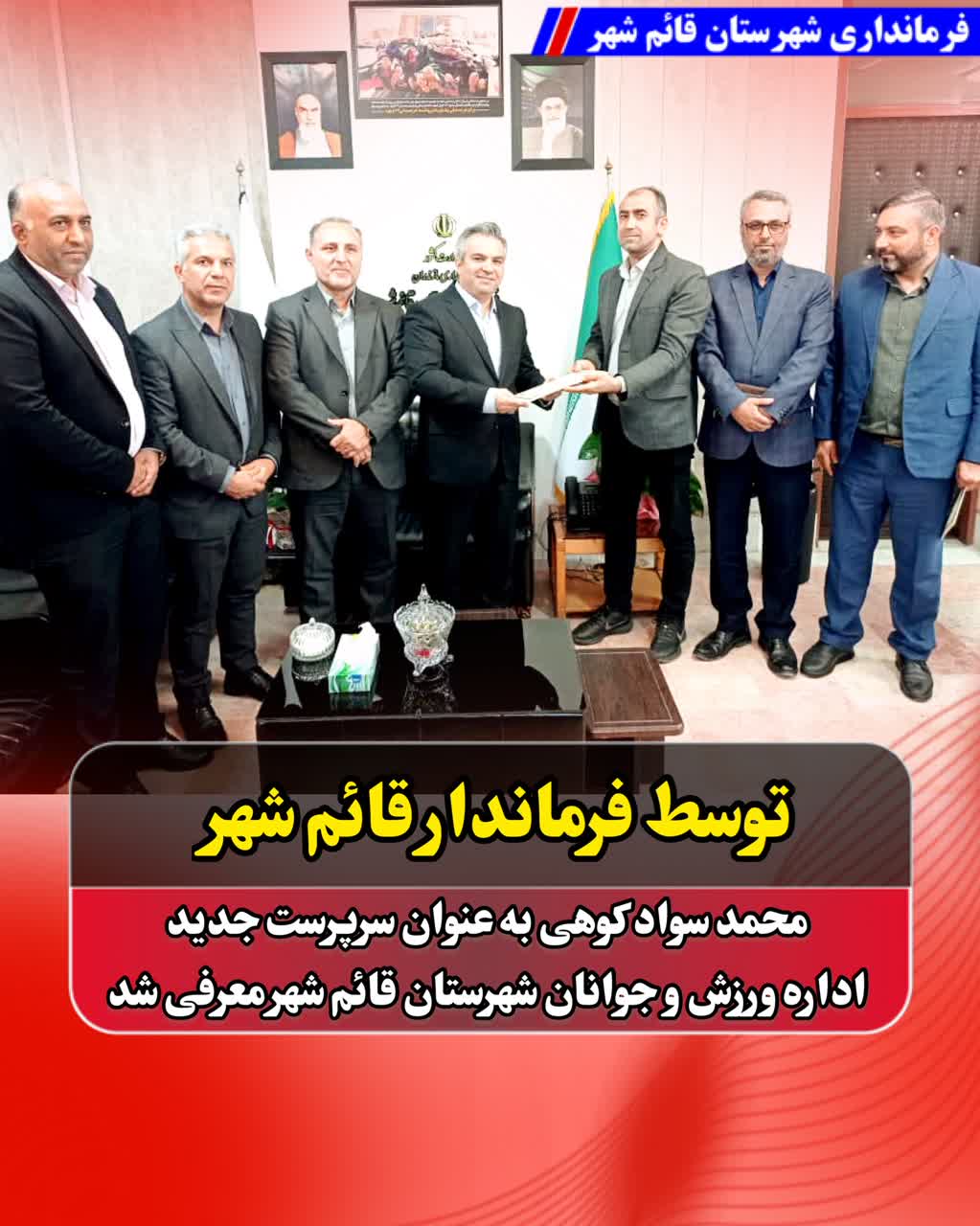 سرپرست جدید اداره ورزش و جوانان شهرستان قائمشهر توسط فرماندار قائمشهر معارفه شد