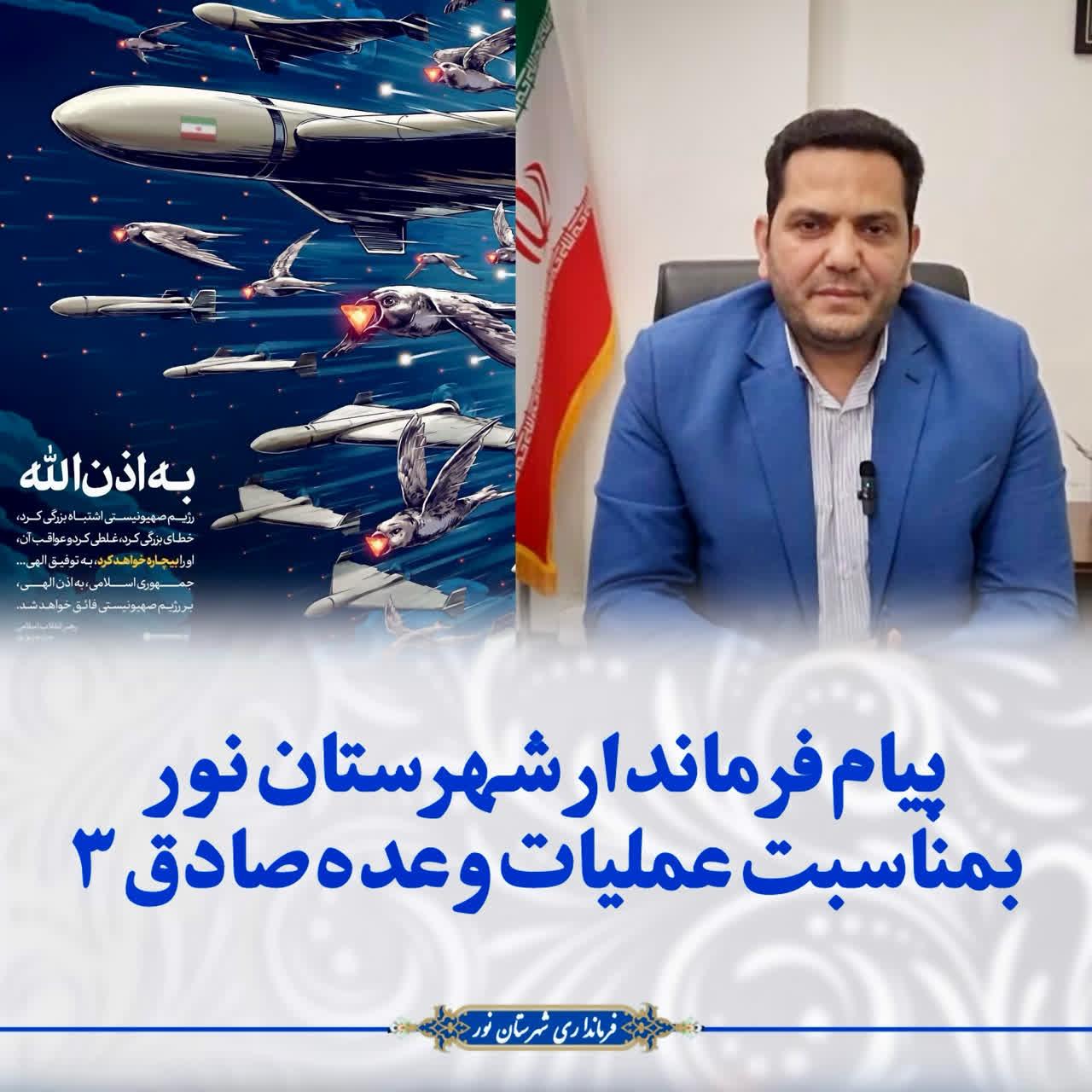 پیام فرماندار شهرستان نور به مناسبت عملیات «وعده صادق ۳»