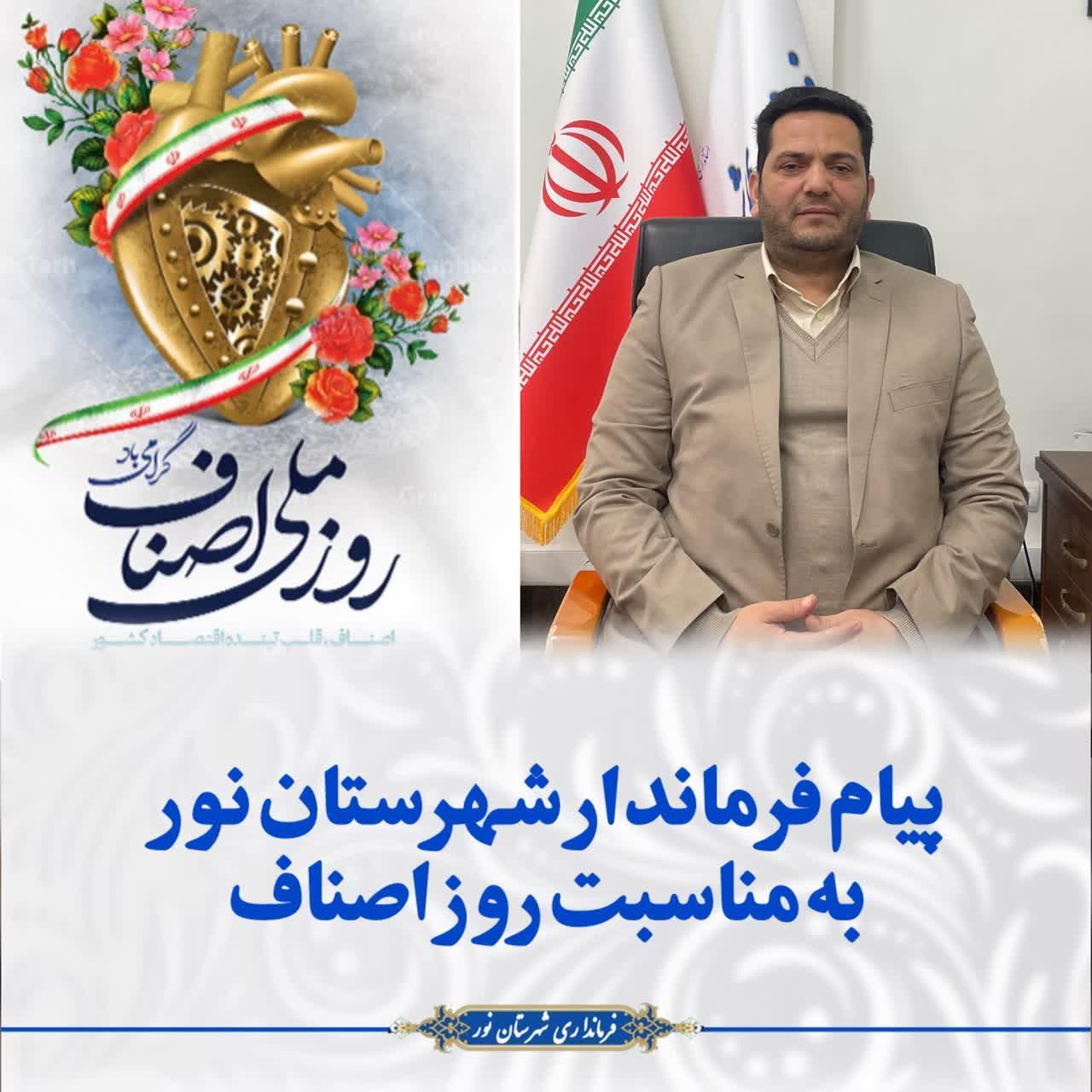 اینجانب ضمن تبریک فرارسیدن روز ملی اصناف به همه فعالان صنفی شریف و زحمتکش شهرستان نور، از تلاشها و خدمات ارزشمند آنان صمیمانه قدردانی مینمایم و امیدوارم با حمایت، همدلی و همراهی بیشتر، شاهد شکوفایی هرچه بیشتر ظرفیتهای اقتصادی و صنفی شهرستان باشیم.