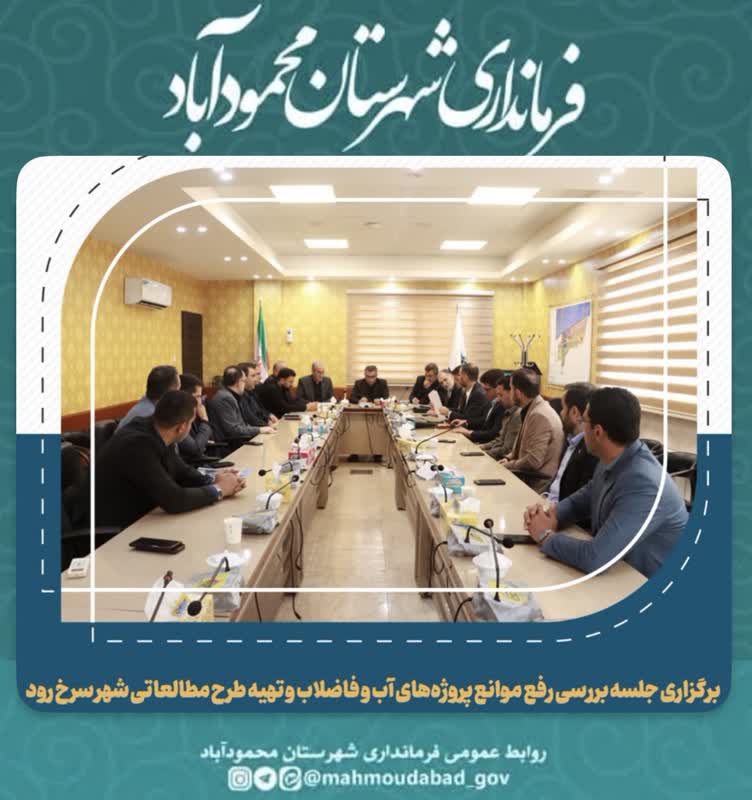 ▫️در پایان این نشست، به ابتکار فرماندار محمودآباد، مقرر شد فرآیند تدوین طرح مطالعاتی جامع شهر سرخ رود با همکاری تیمهای فنی شهرداری و آبفا آغاز شود و جدول زمانبندی اجرای آن تا پیش از جلسه رسمی در تاریخ ۵ شهریور ۱۴۰۴ تهیه و ابلاغ شود.