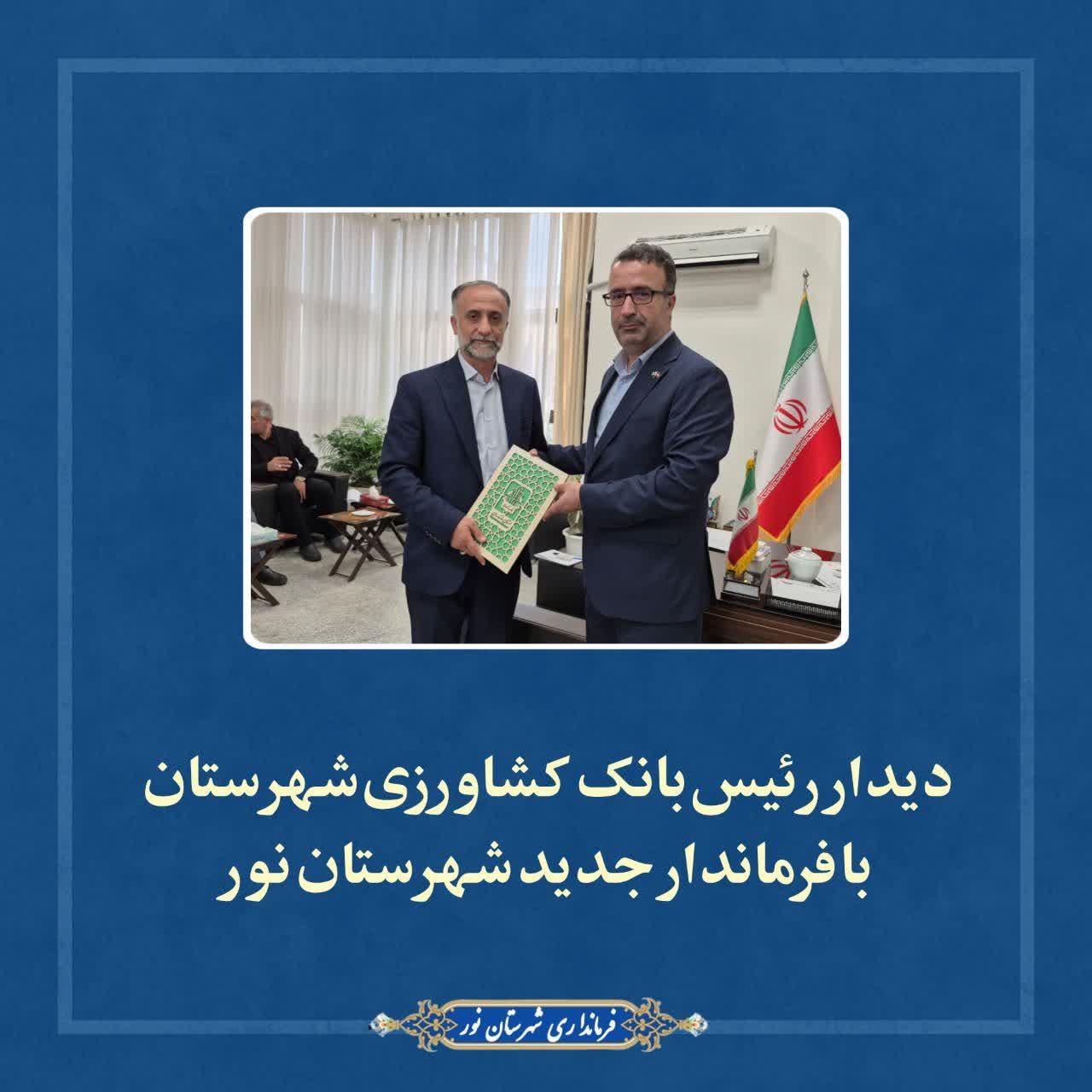 رئیس بانک کشاورزی شهرستان نور با حضور در محل فرمانداری، ضمن دیدار با فرماندار جدید این شهرستان، انتصاب ایشان را تبریک گفت.