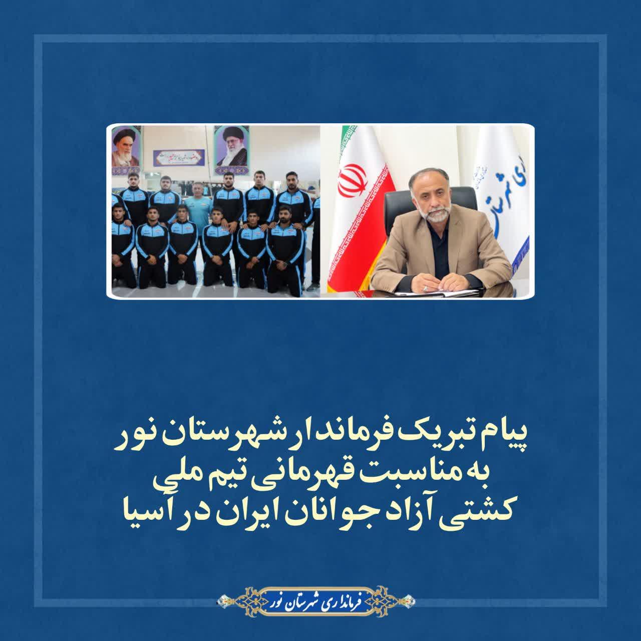 پیام تبریک فرماندار شهرستان نور به مناسبت قهرمانی تیم ملی کشتی آزاد جوانان ایران در آسیا